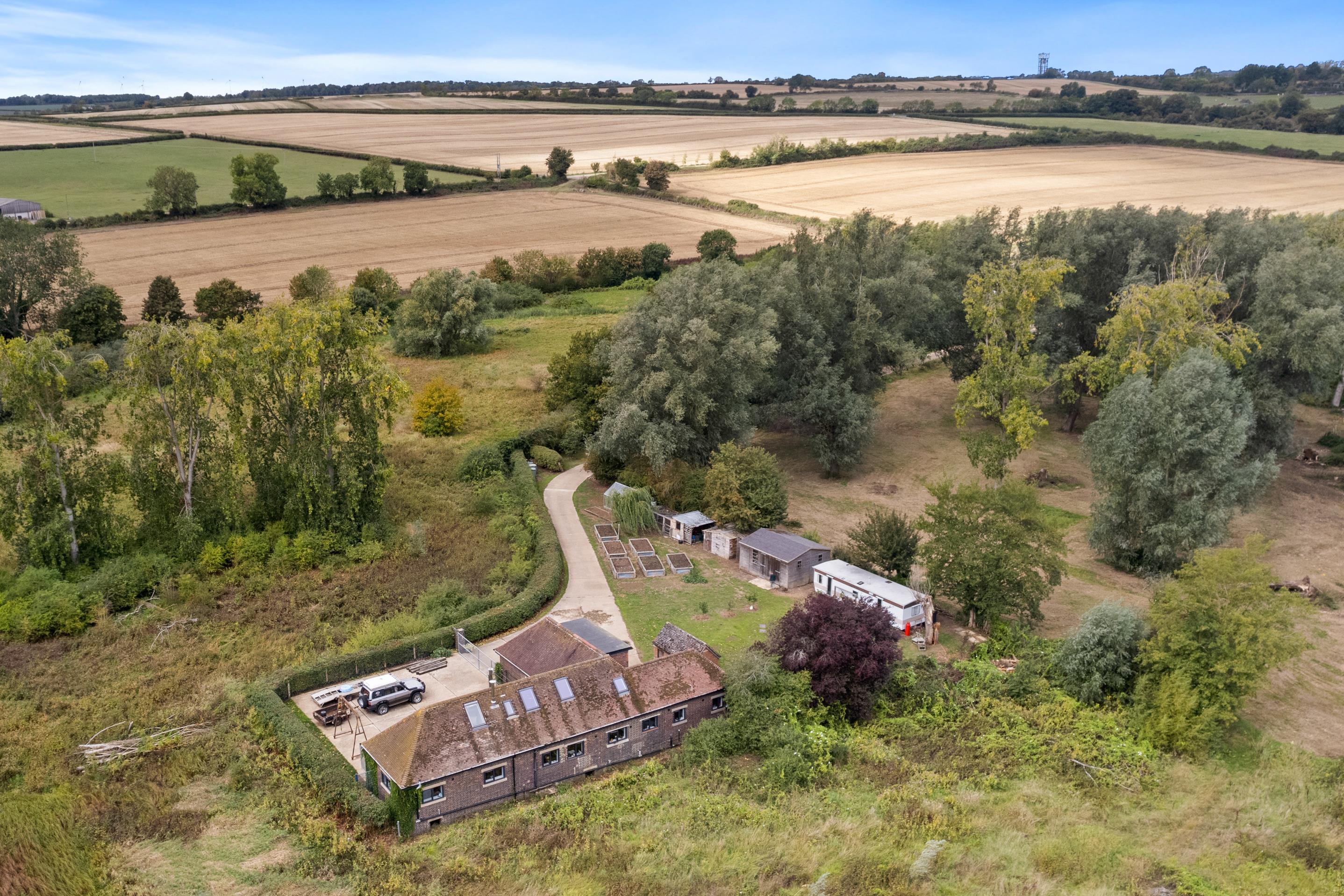The property sits on a private plot 1/4 mile from the main road with secure gated access from Glebe Farm. Sweeping driveway leading to the house with ample parking, lawn with raised vegetable beds and various outbuildings. Mature hedge and planting surrounded by open countryside offering a private aspect. Country side walks and the river Nene are close by. Set in a Hamlet just out of the village of Woodford which offers many amenities to include shops, schooling, tea rooms, pub and village church offering a lovely community feel. The market town of Thrapston - just a five minute drive away has many independent shops, schooling and leisure facilities. The major road network links of the A45 and A14 are close by leading to the M1/M6. The train station is located in Kettering approximately 20 minutes drive away. The new Rushden Lakes development is a 15 minutes drive offering many recreational facilities along with country and riverside walks.