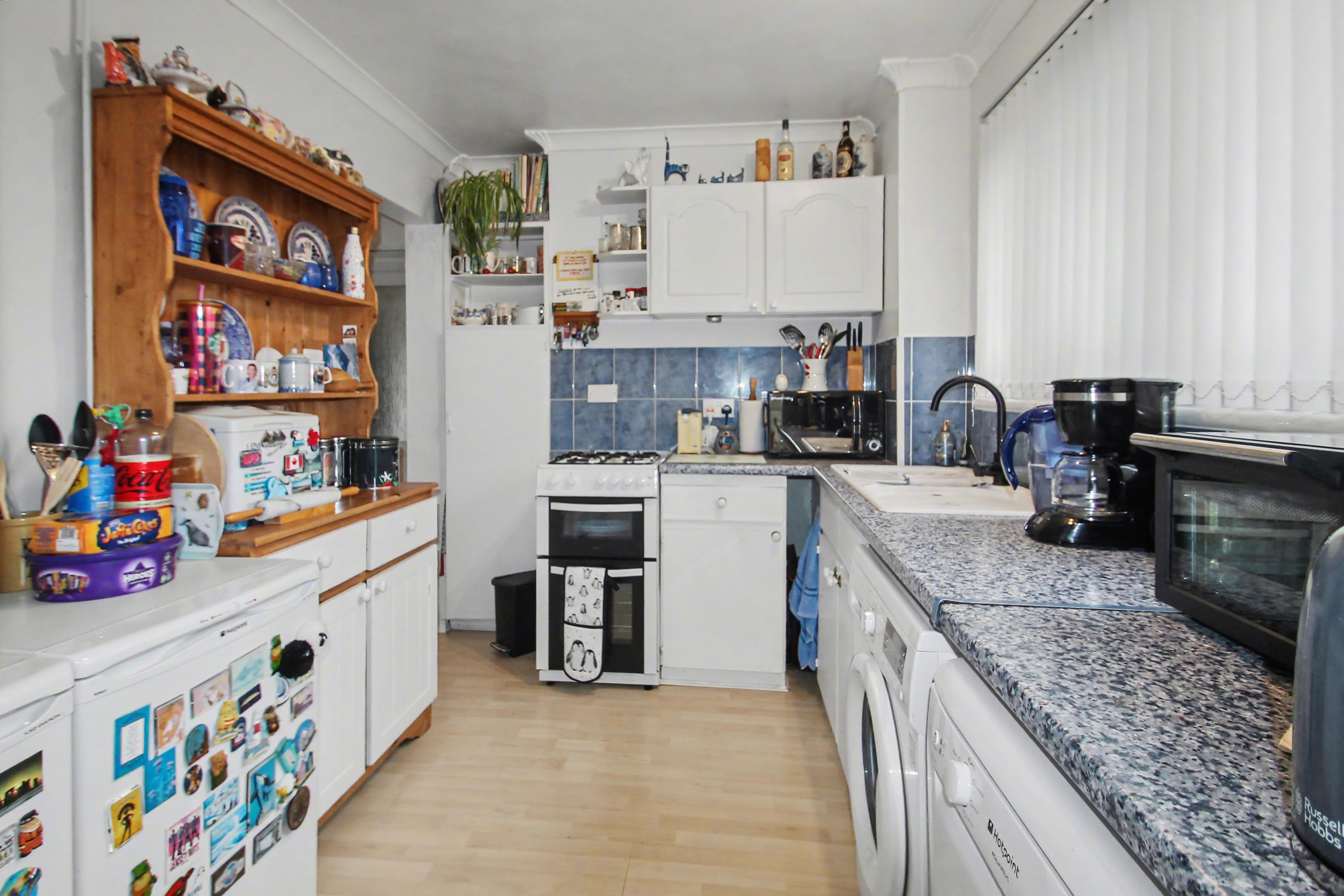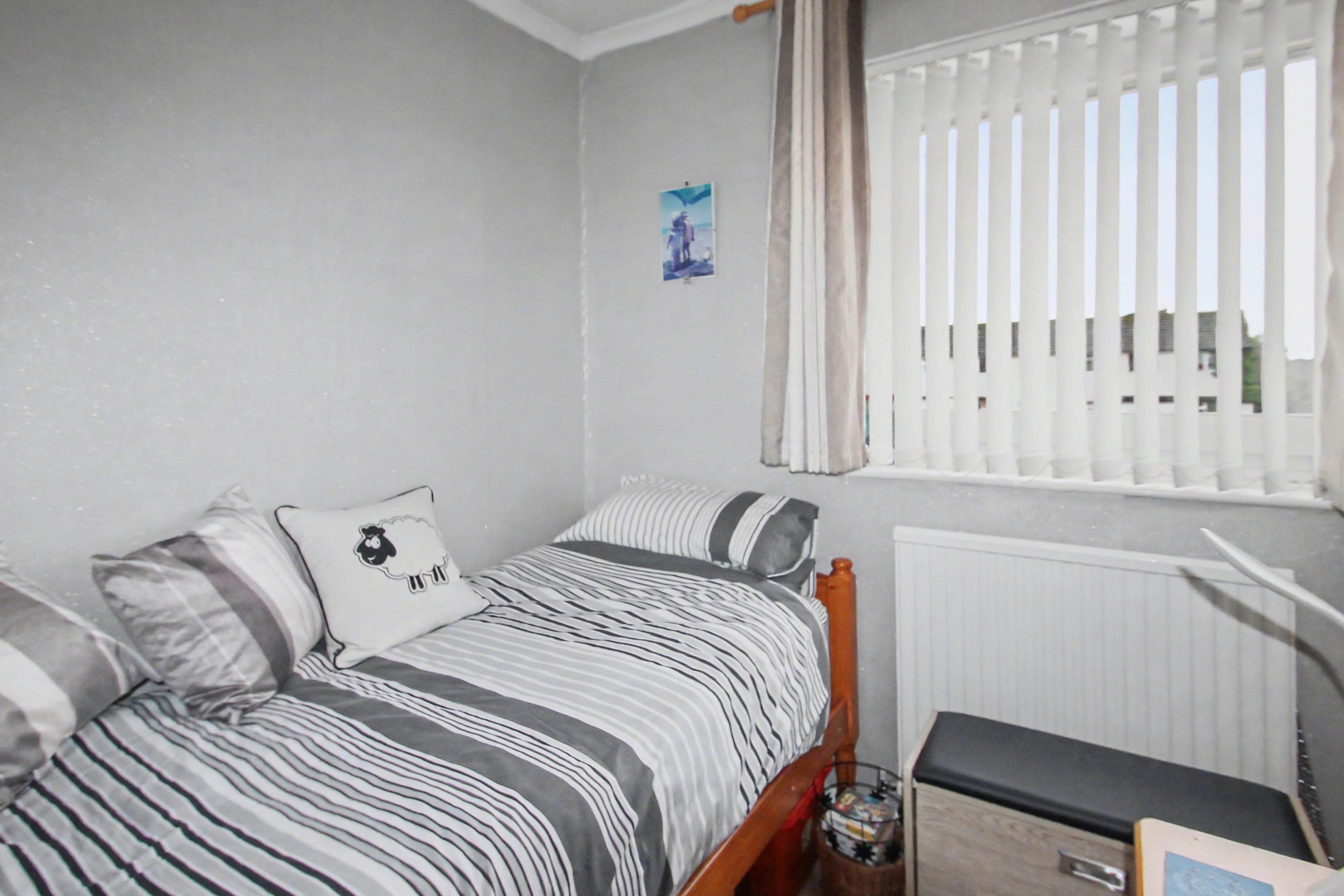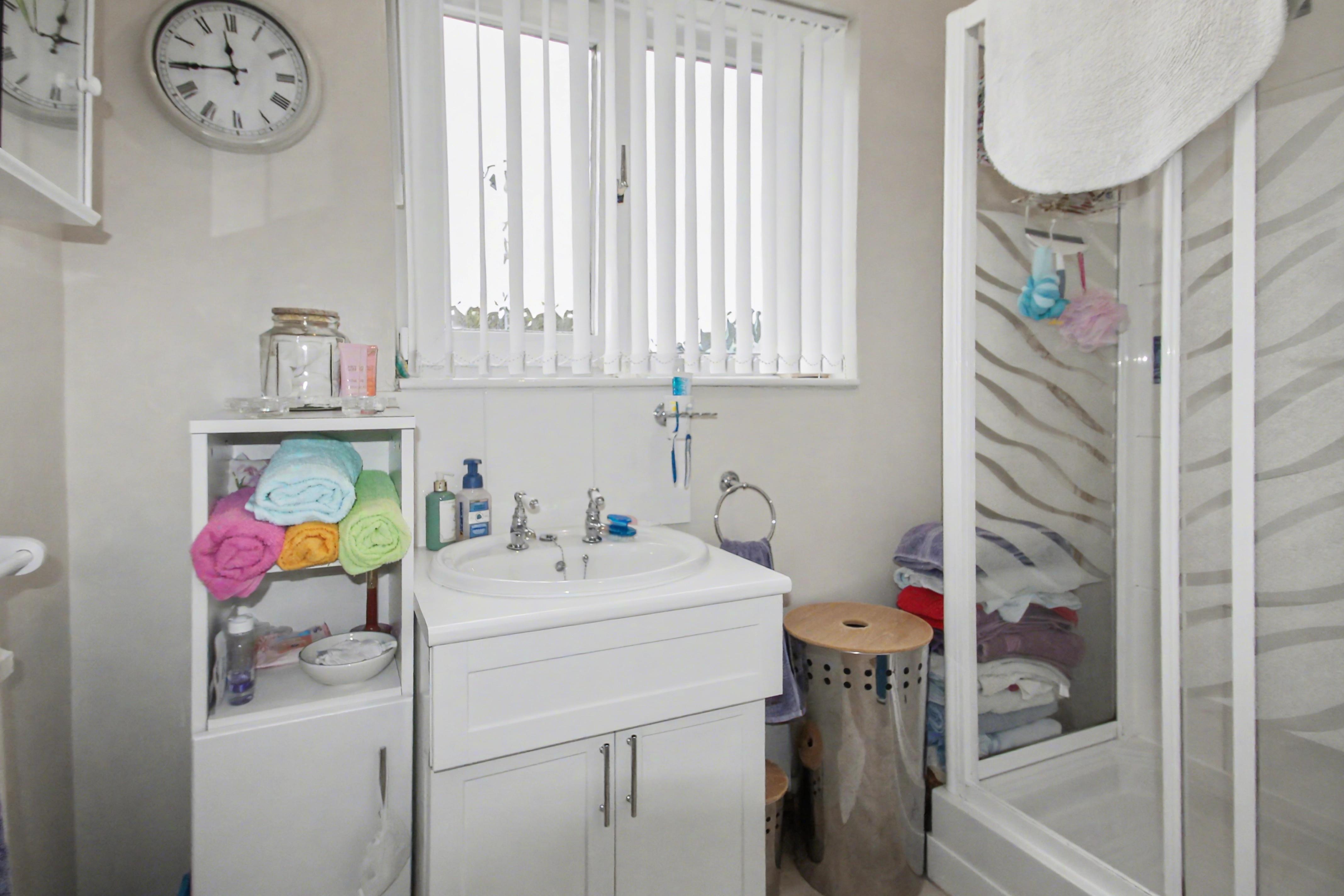 To the first floor, the property offers three well-proportioned bedrooms along with a family shower room and a separate WC. Externally, the home benefits from an enclosed rear garden, predominantly laid to lawn, providing a pleasant and private outdoor space.