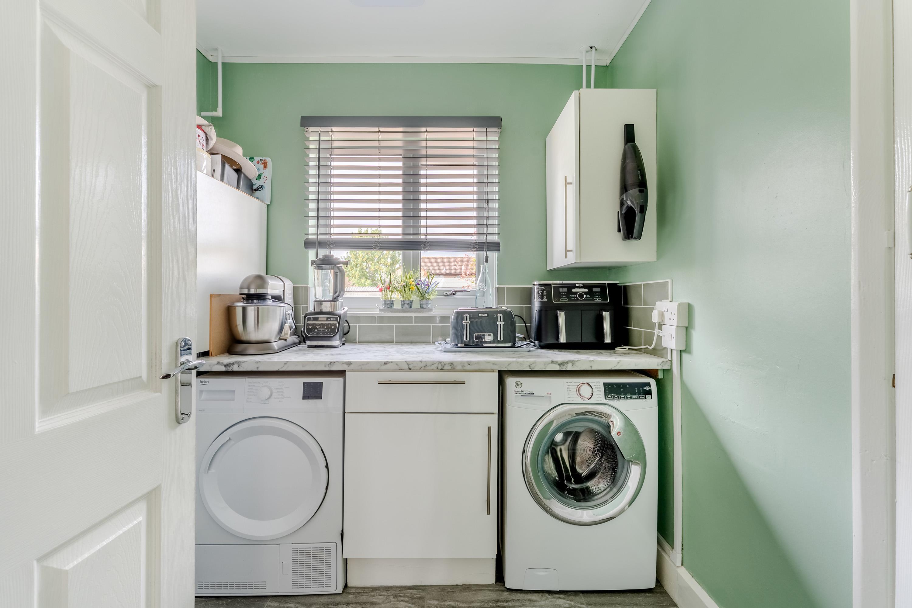 The thoughtfully designed accommodation flows seamlessly from the welcoming entrance hall into a lounge featuring an attractive fireplace as its focal point. The heart of the home is the luxury fitted kitchen/dining room, which boasts high quality built in and integrated appliances, creating an ideal space for both everyday living and entertaining. Practical additions include a convenient utility room and a side passage that provides access to two useful store rooms and the downstairs WC, which also serves as a gateway to the beautifully landscaped rear garden.