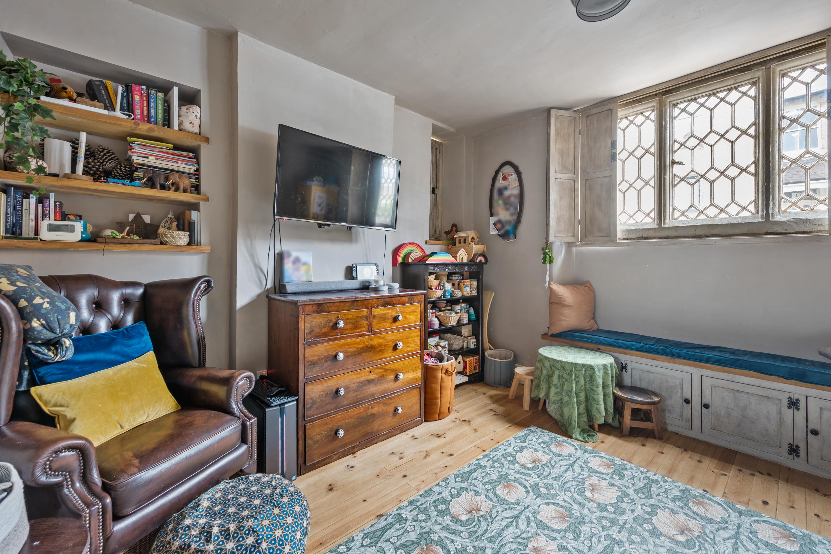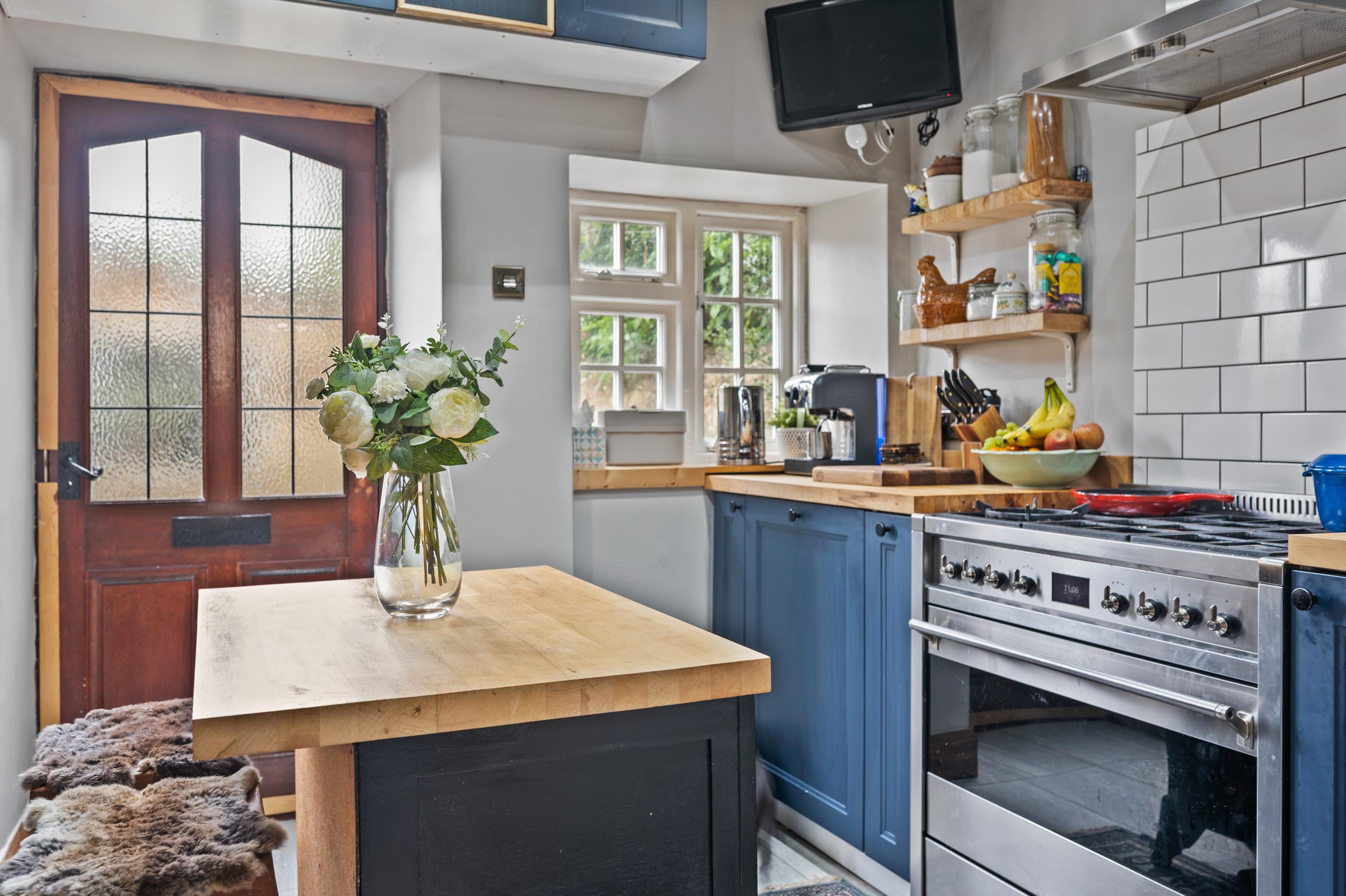 The accommodation comprises a modern fitted kitchen/dining room with access to the sitting room. The superb sitting room boasts an attractive stone mullioned window that floods the space with natural light, complemented by a wood flooring.