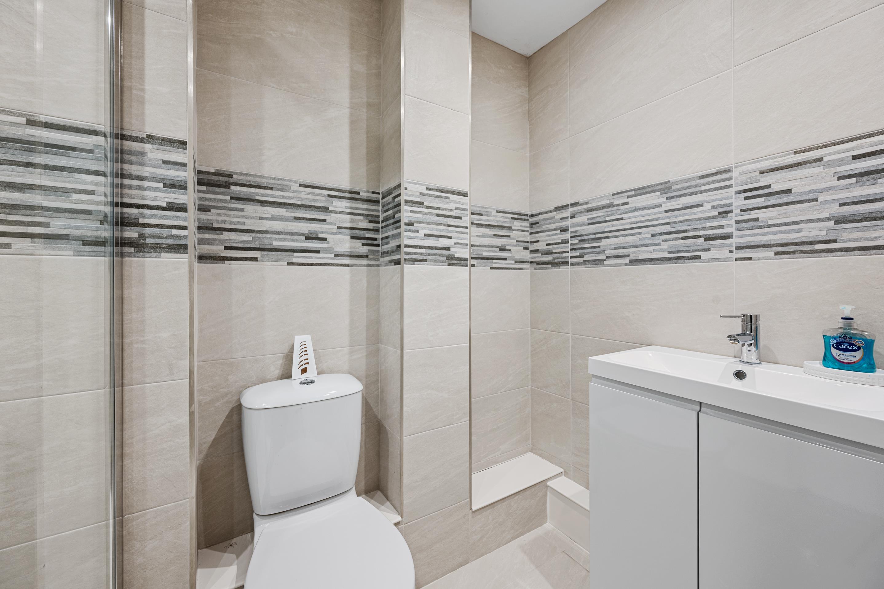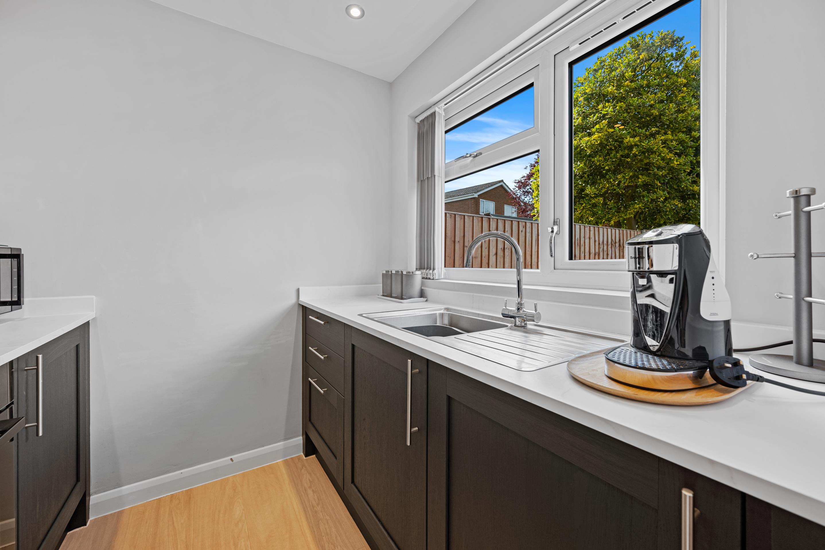 The accommodation continues through a convenient sliding door into the luxury fitted kitchen, which has been appointed with built in appliances, making it both stylish and highly functional for modern living. Ascending to the first floor, you'll discover three well proportioned bedrooms that offer flexible accommodation for families or those requiring home office space, complemented by a luxuriously appointed fitted shower room that serves the upper level.