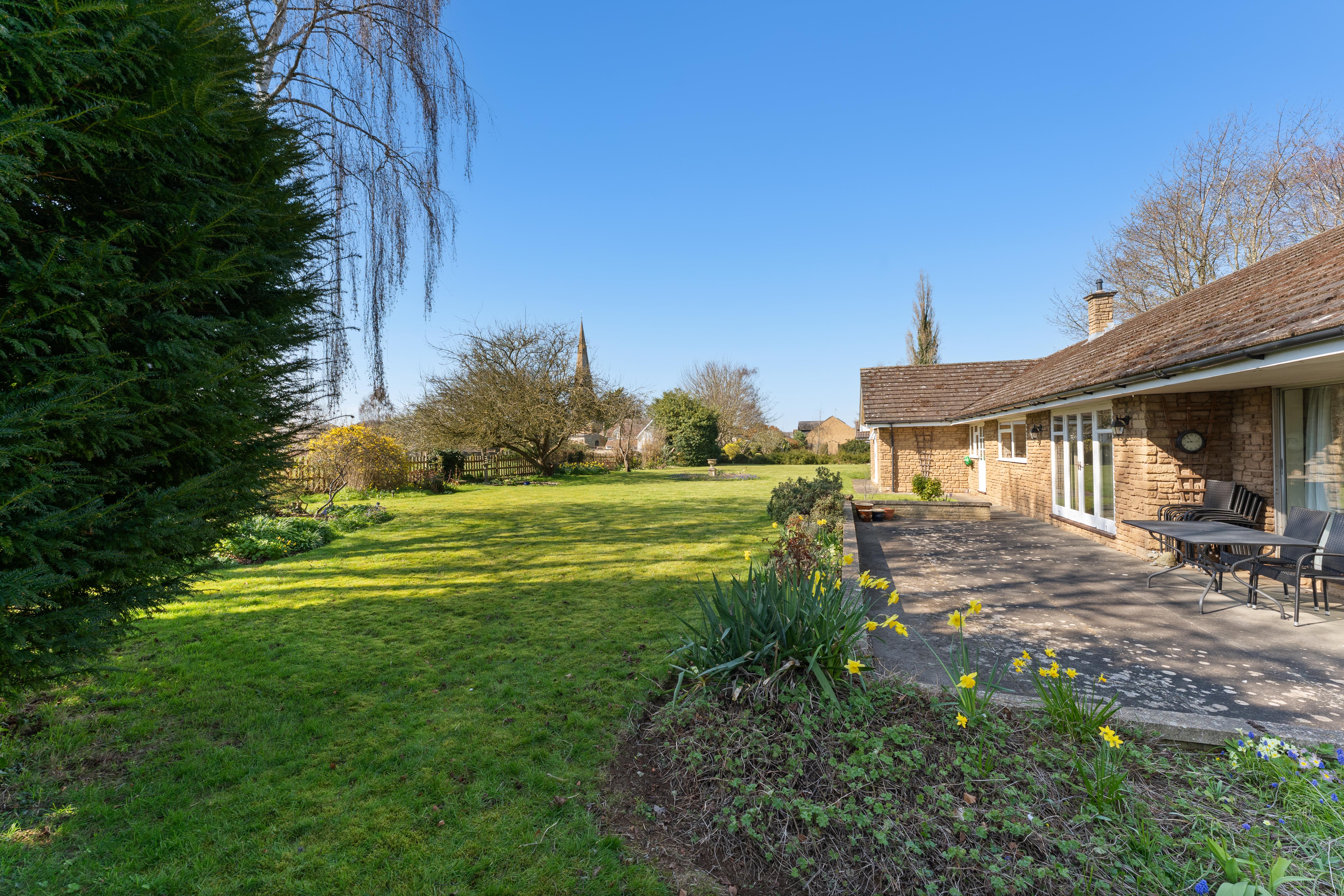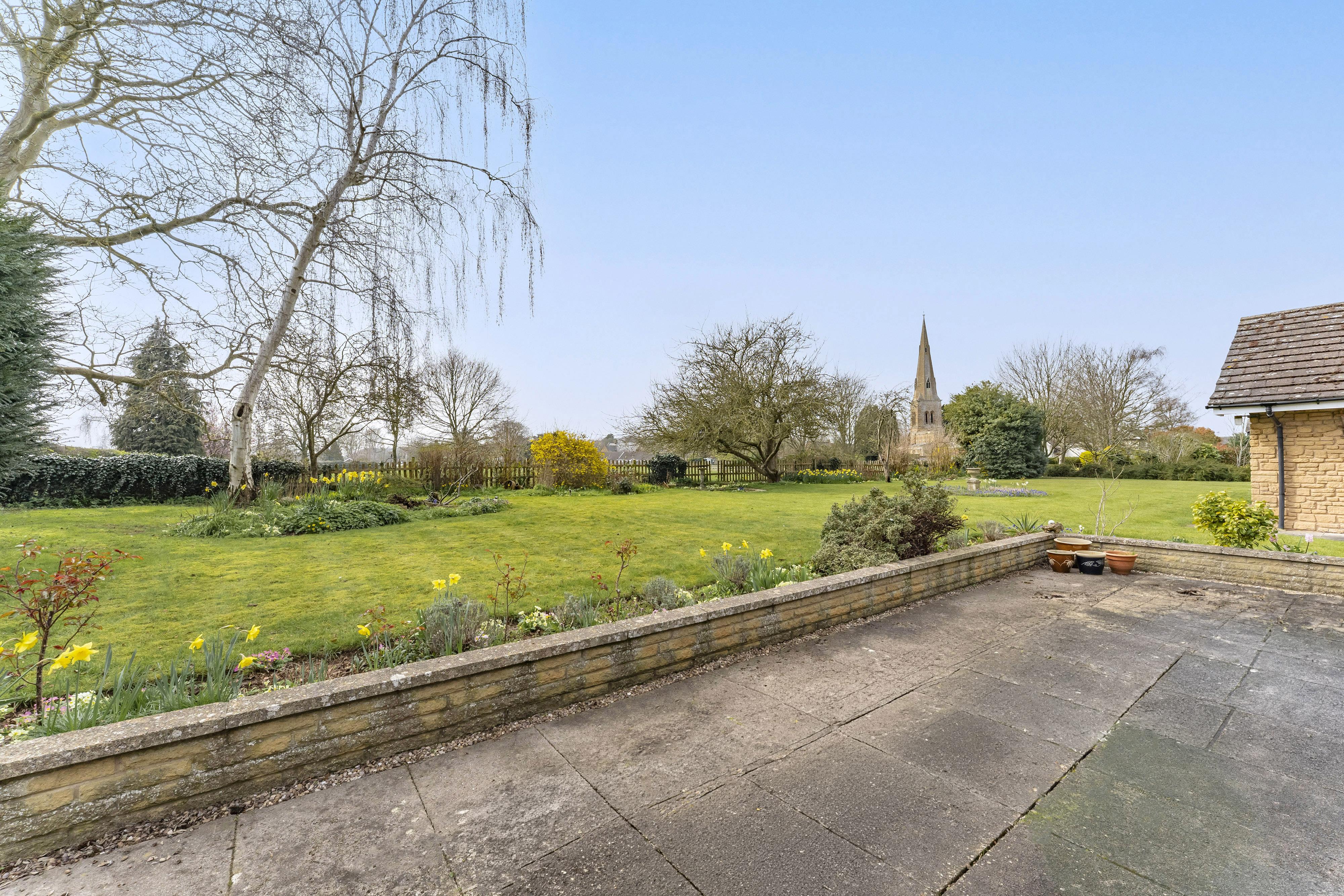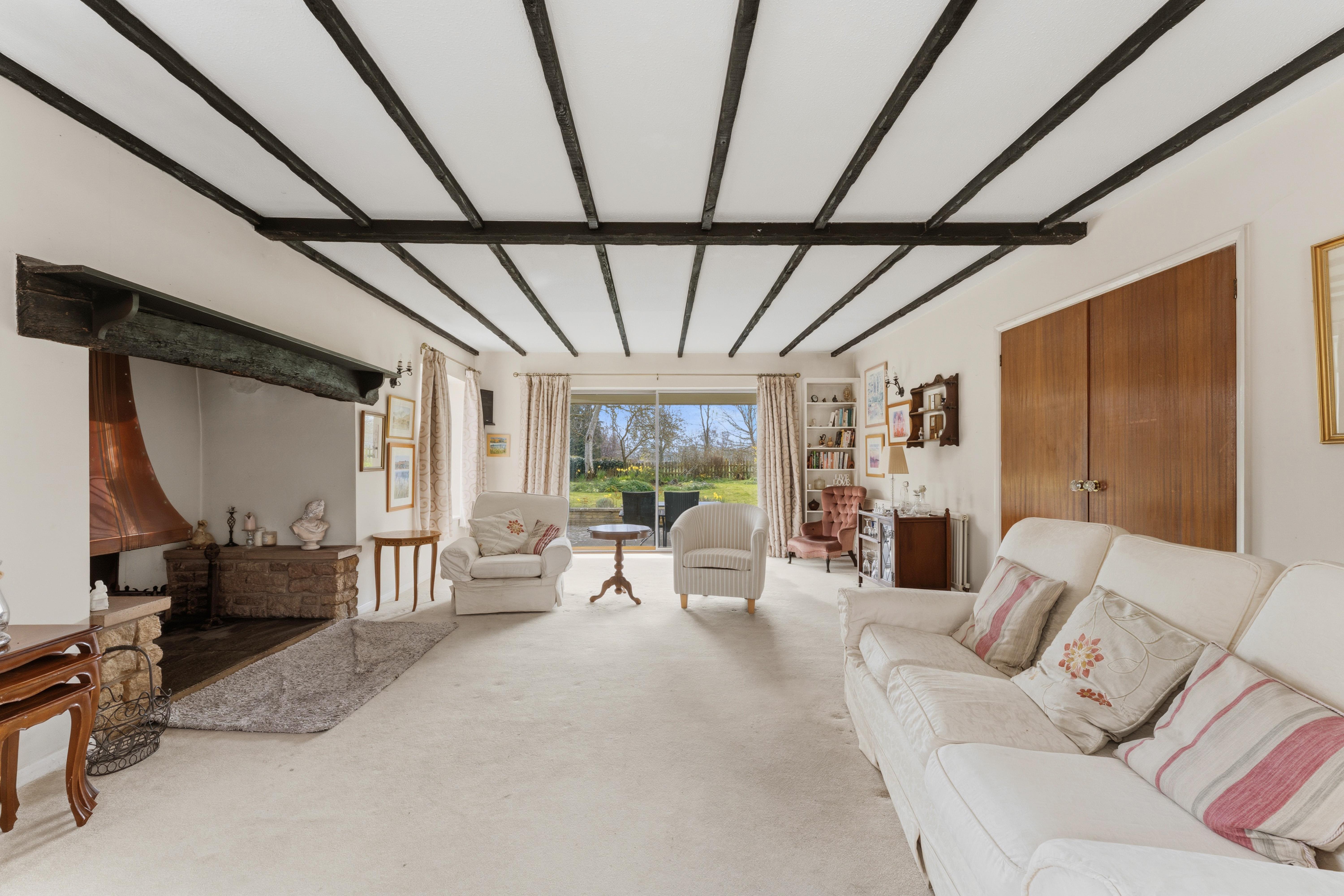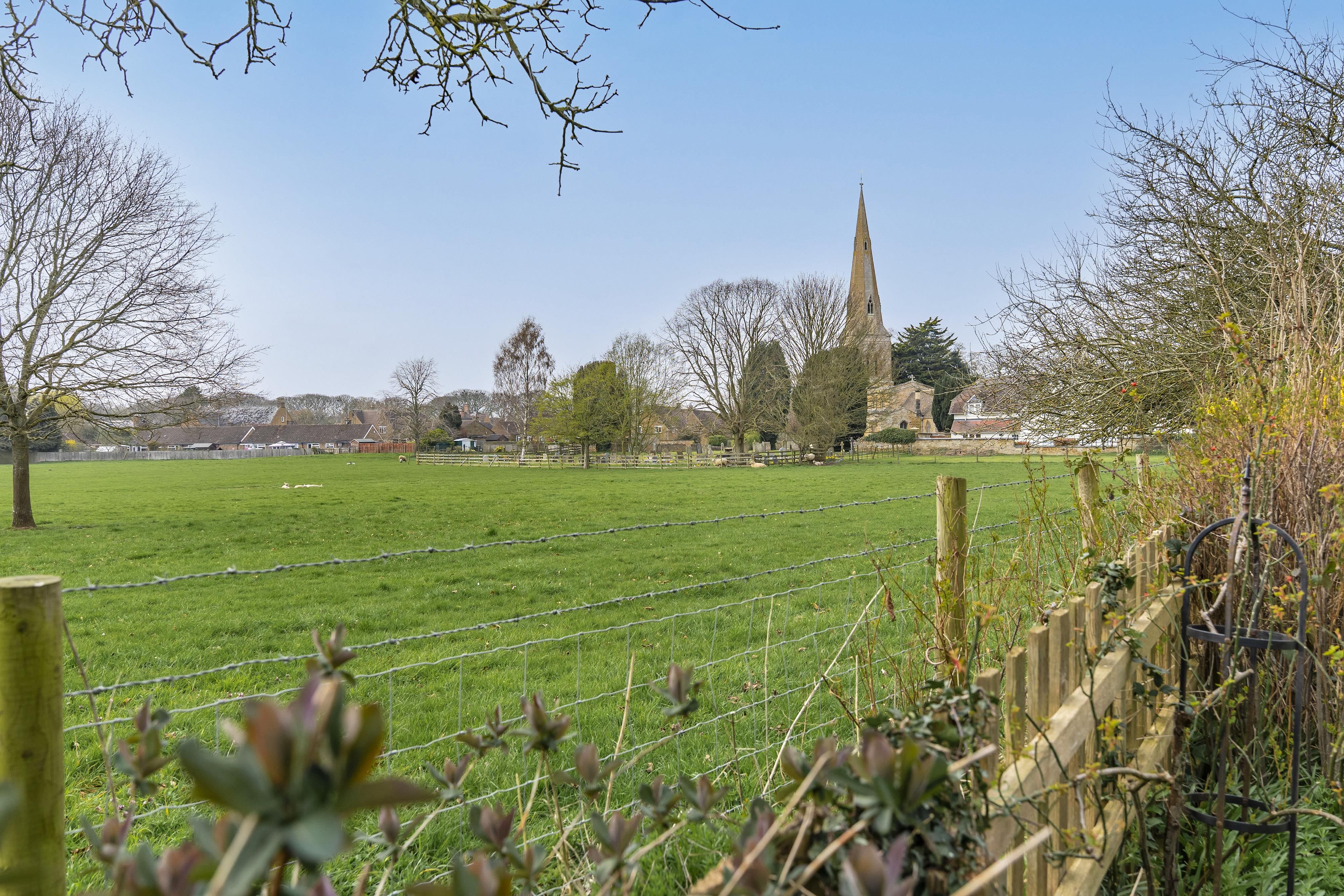 It combines spacious well laid-out interiors with a 0.45-acre plot South West facing garden offering panoramic views over the picturesque Glebe field and local church.