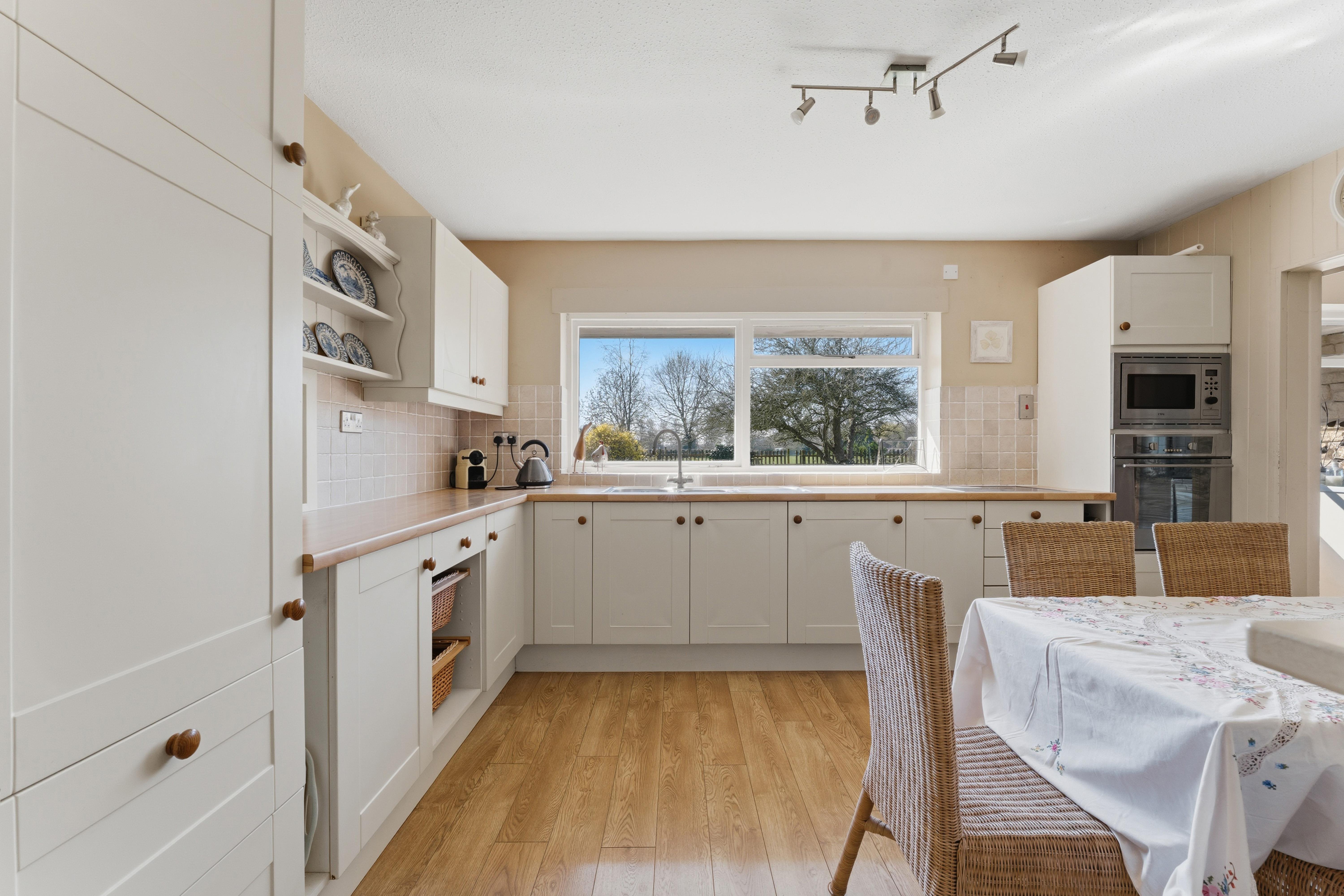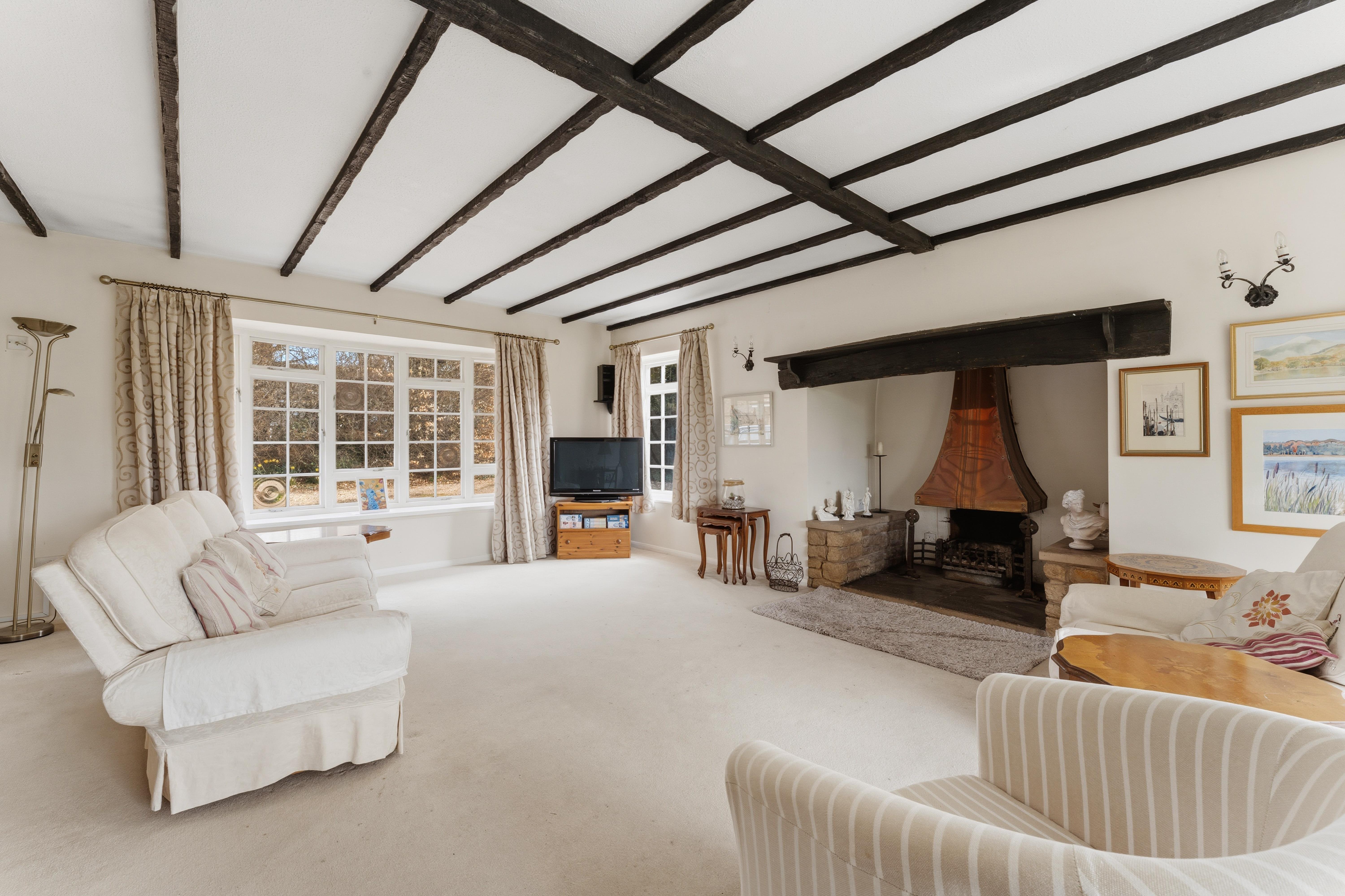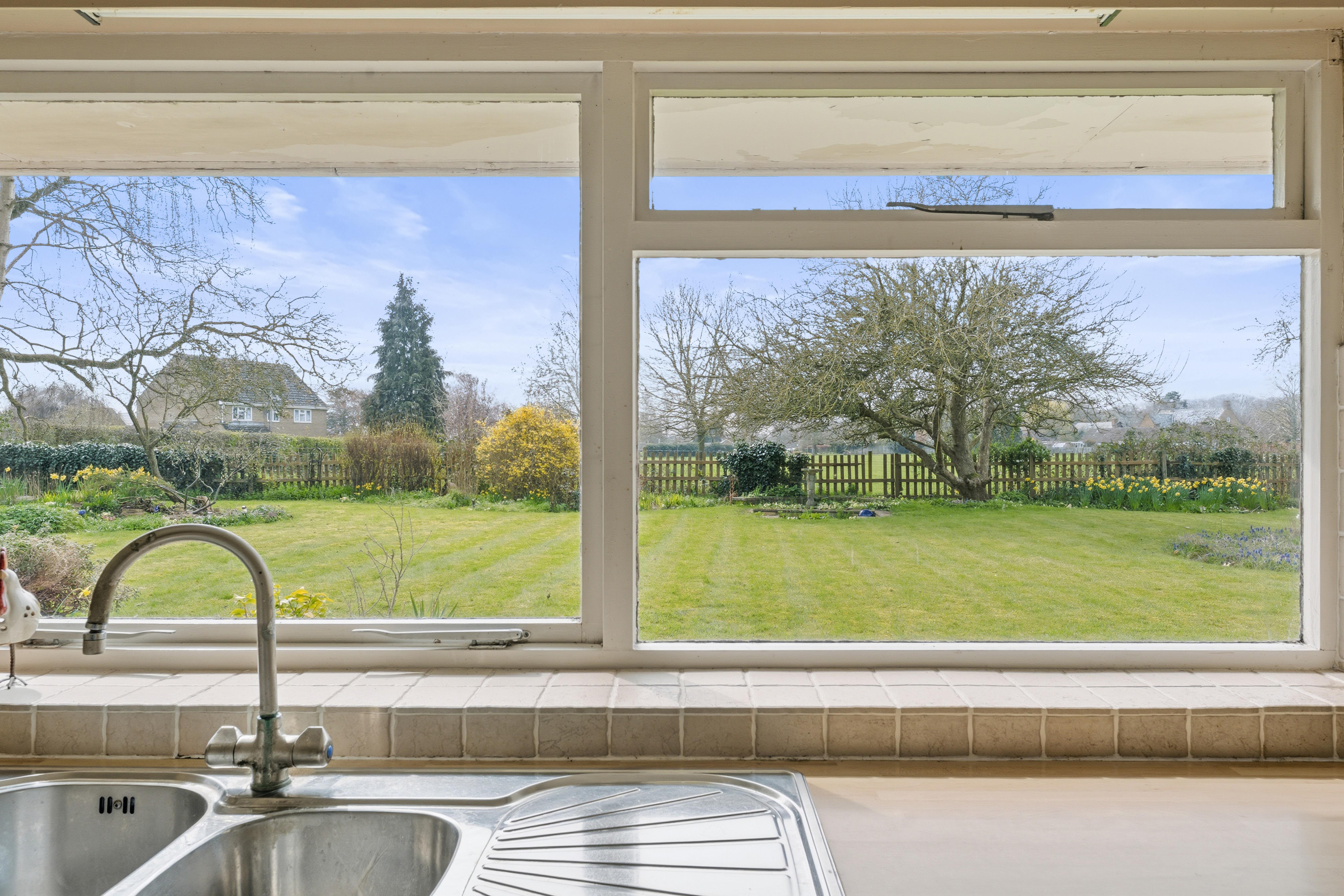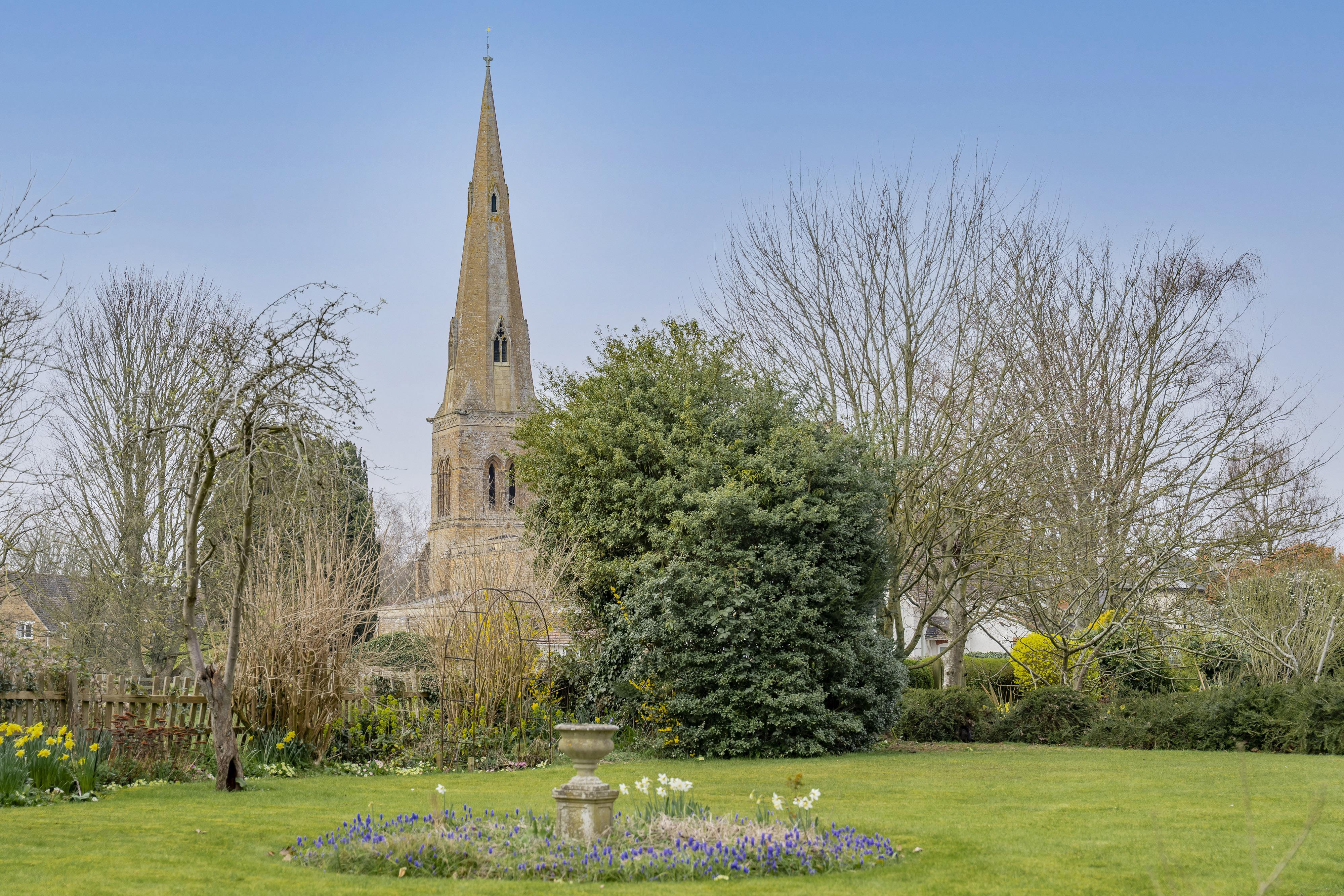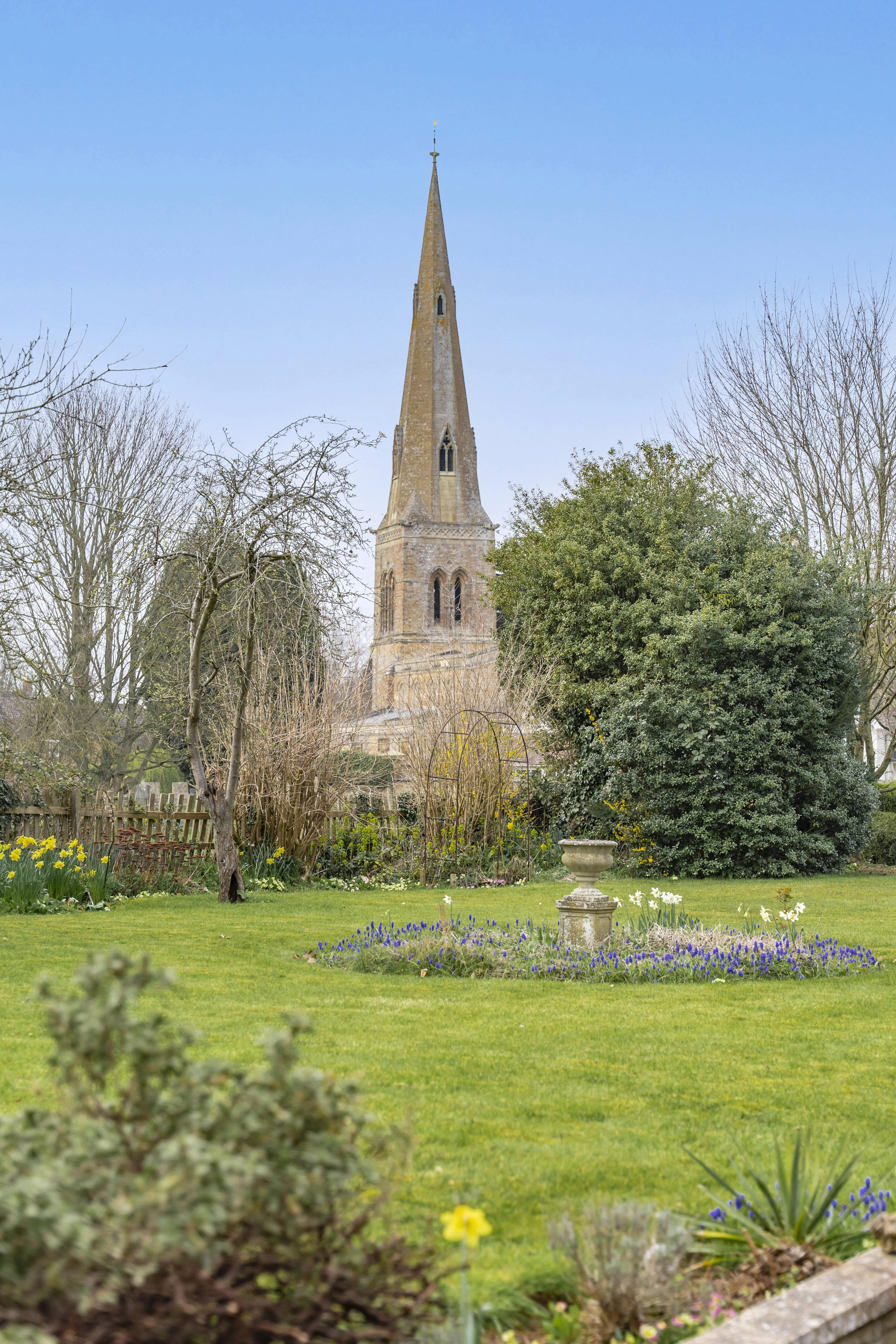 It combines spacious well laid-out interiors with a 0.45-acre plot South West facing garden offering panoramic views over the picturesque Glebe field and local church.
