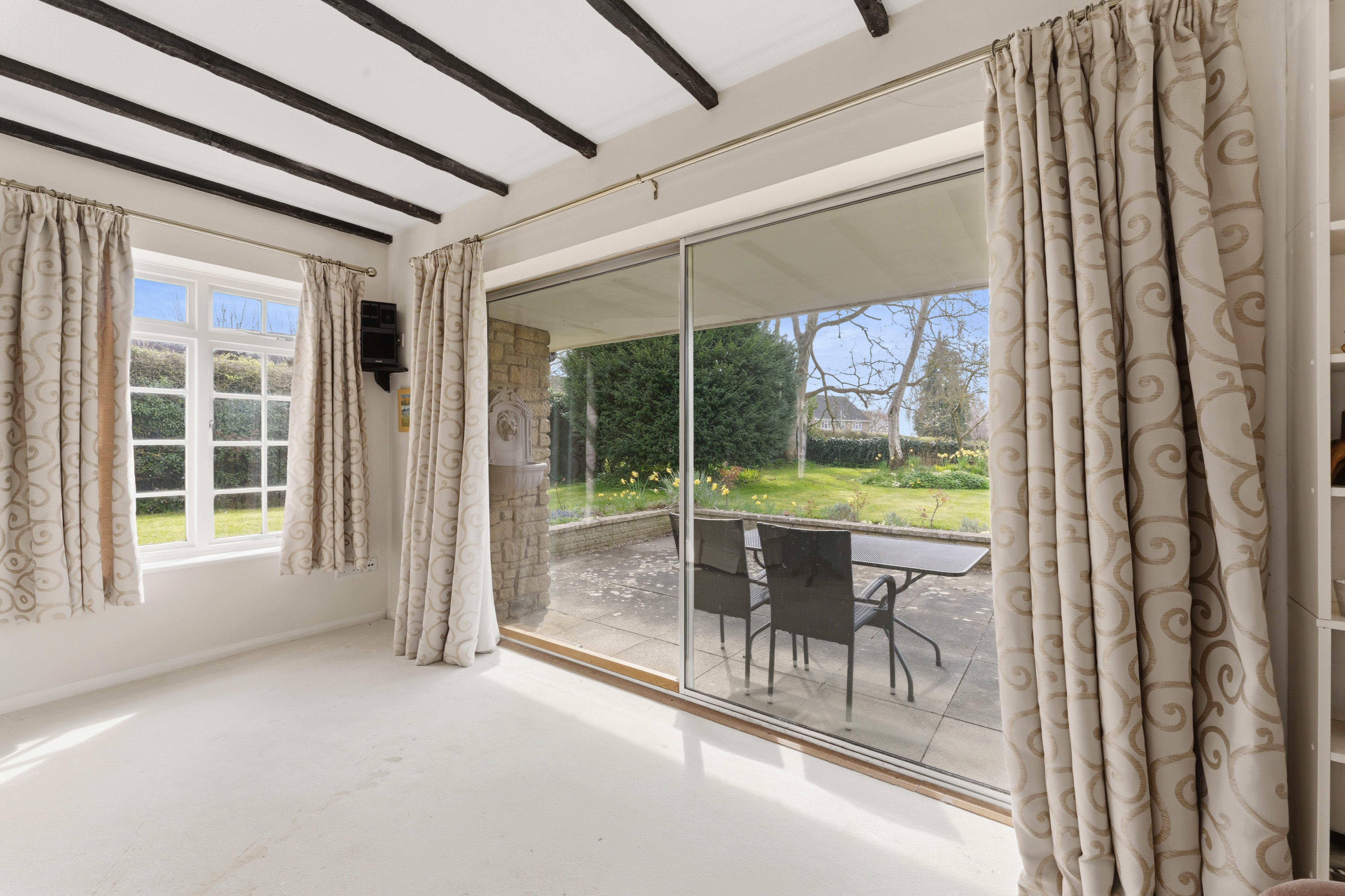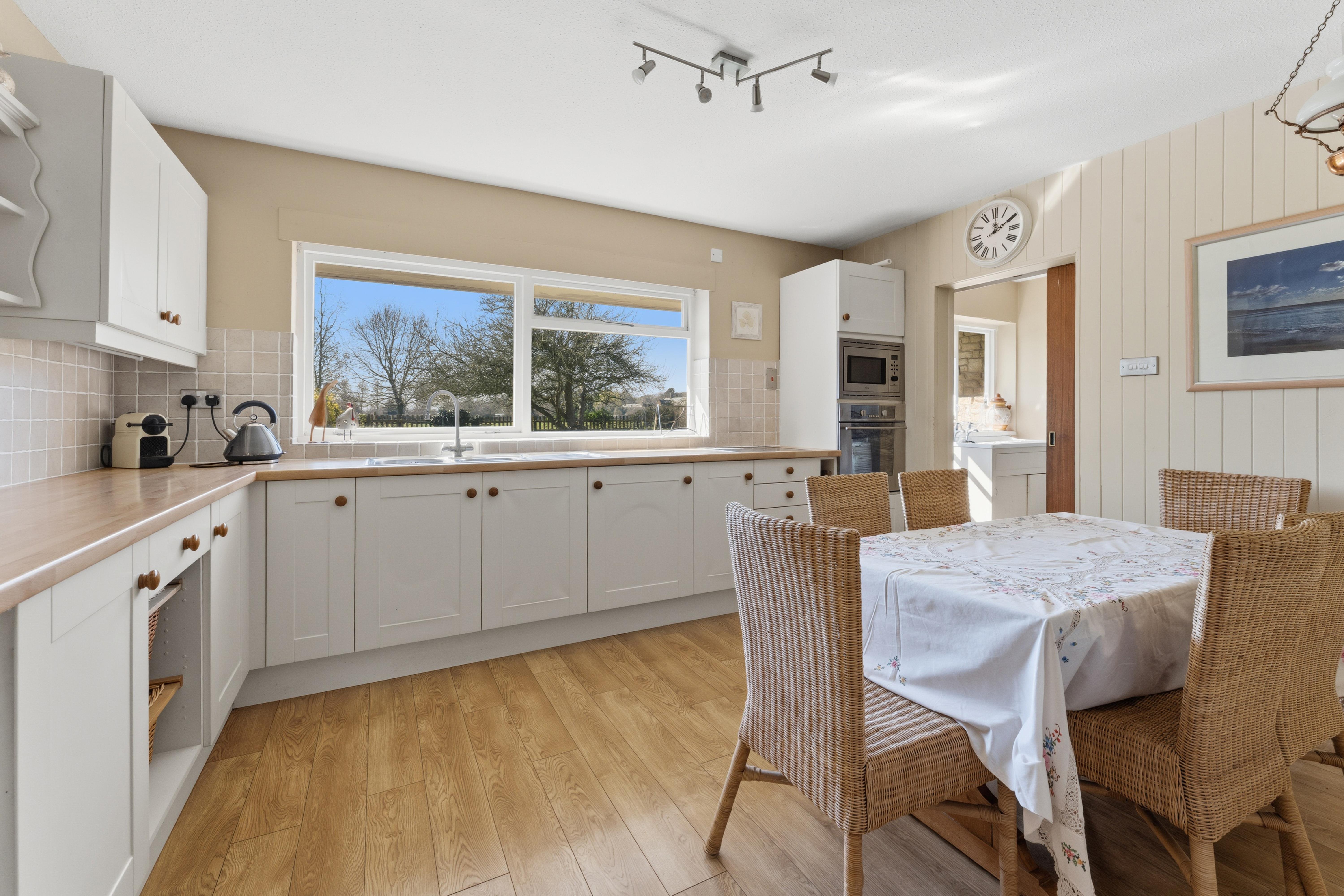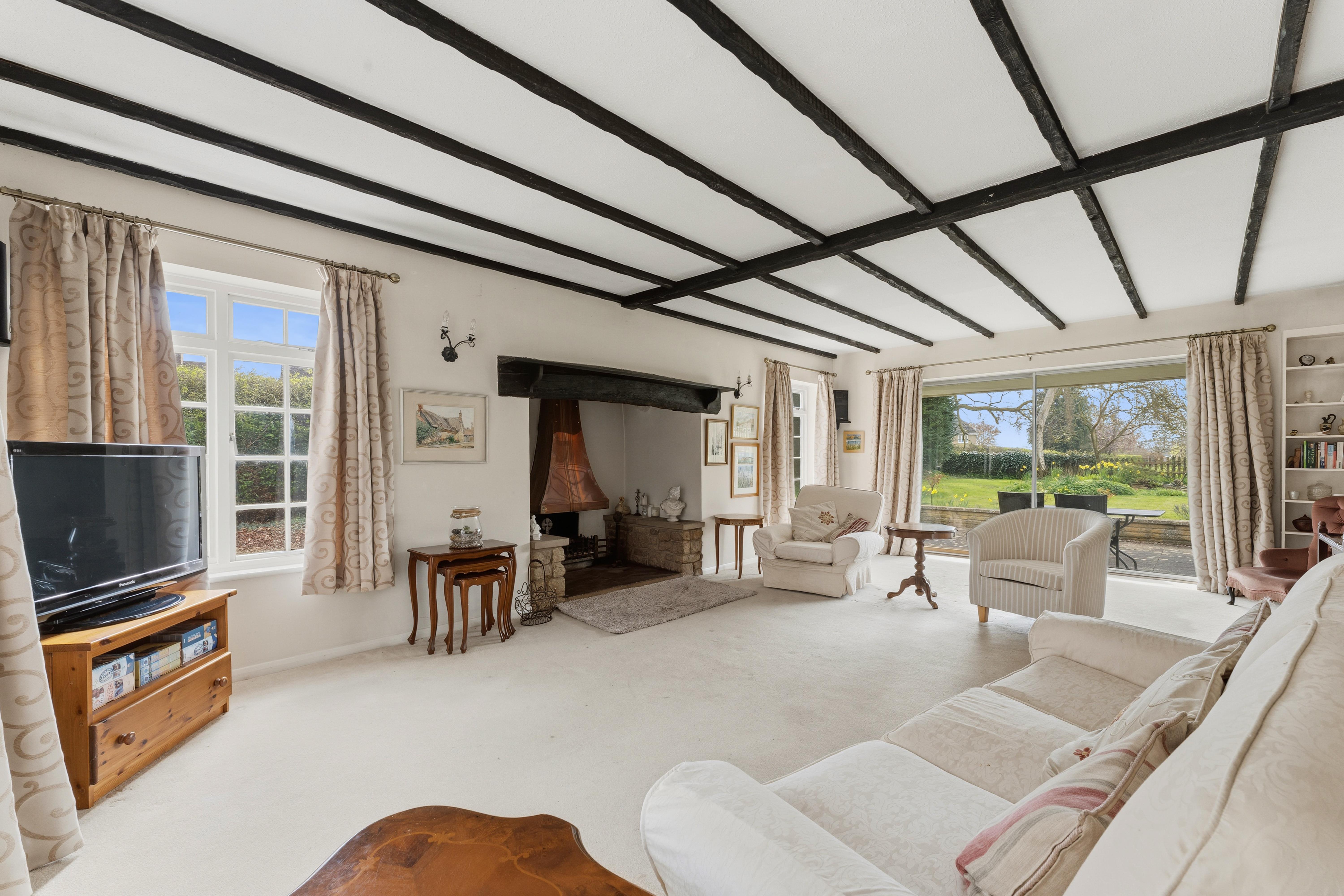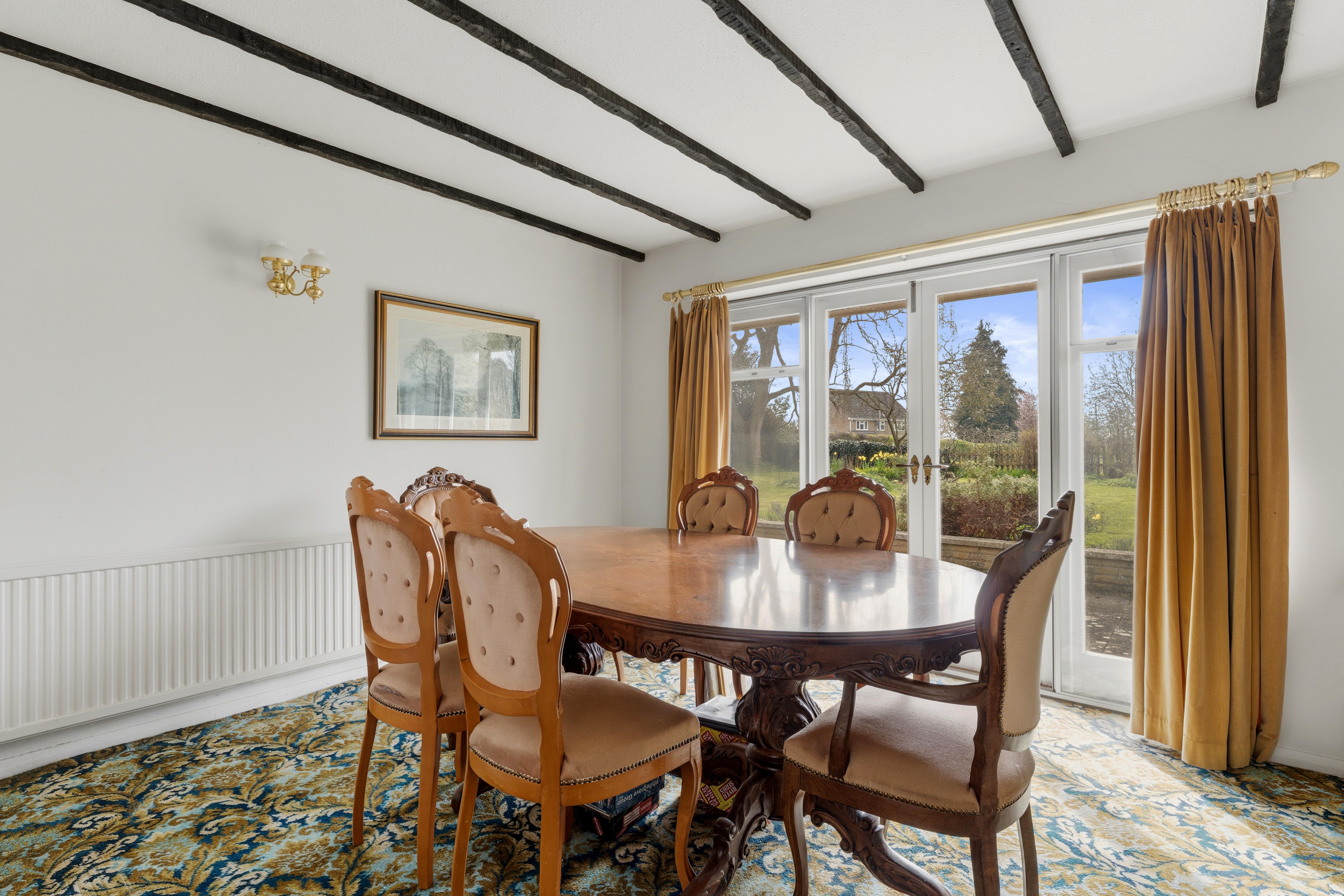 It combines spacious well laid-out interiors with a 0.45-acre plot South West facing garden offering panoramic views over the picturesque Glebe field and local church.