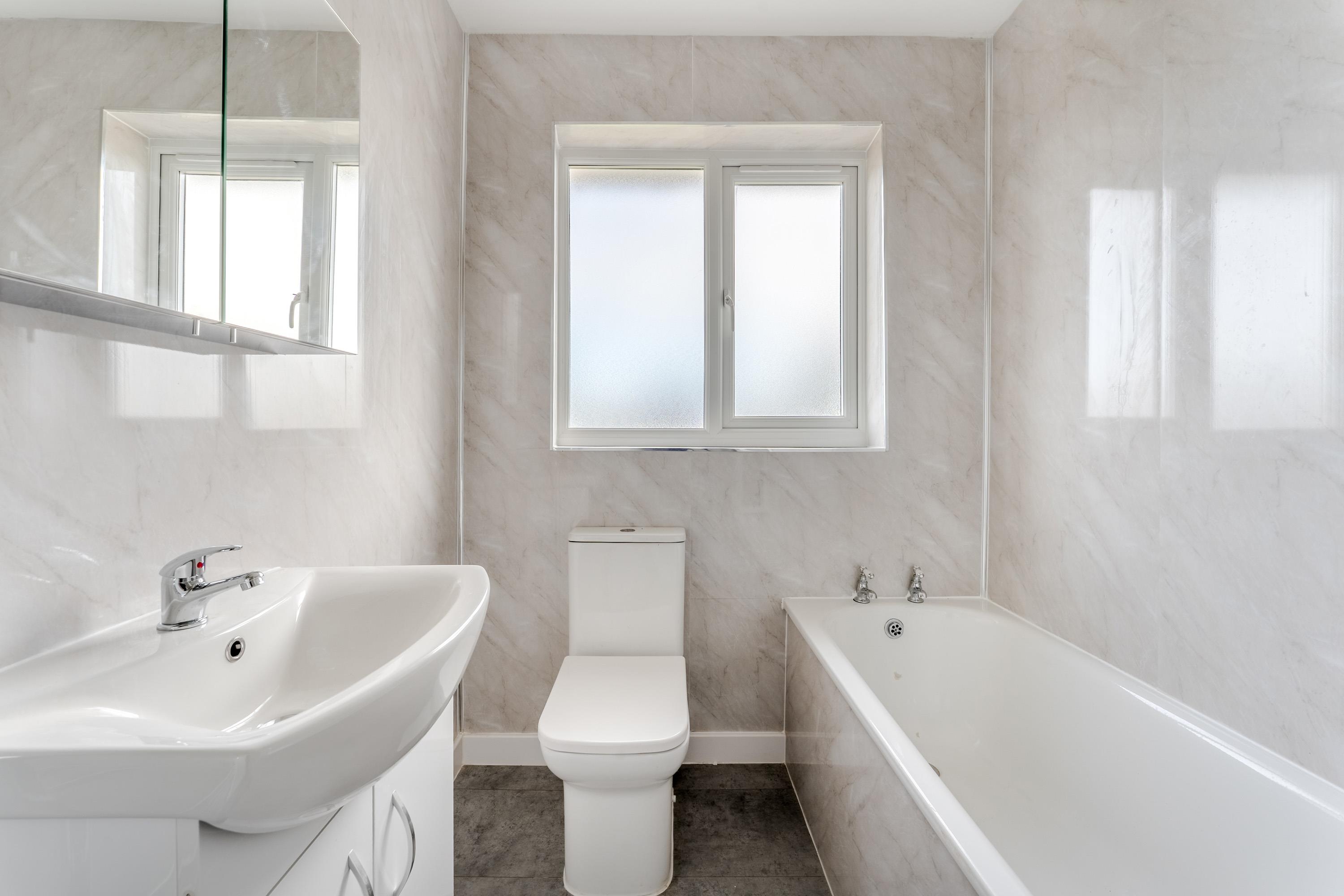 Ascending to the first floor reveals three bedrooms, with the principal bedroom featuring an elegant bay window that mirrors the attractive frontage below. The accommodation is complemented by a contemporary white three piece bathroom suite that exemplifies modern styling and functionality. Practical amenities include off road parking to the front of the property, enhanced by gated access to the side, leading to a covered area that provides useful storage.