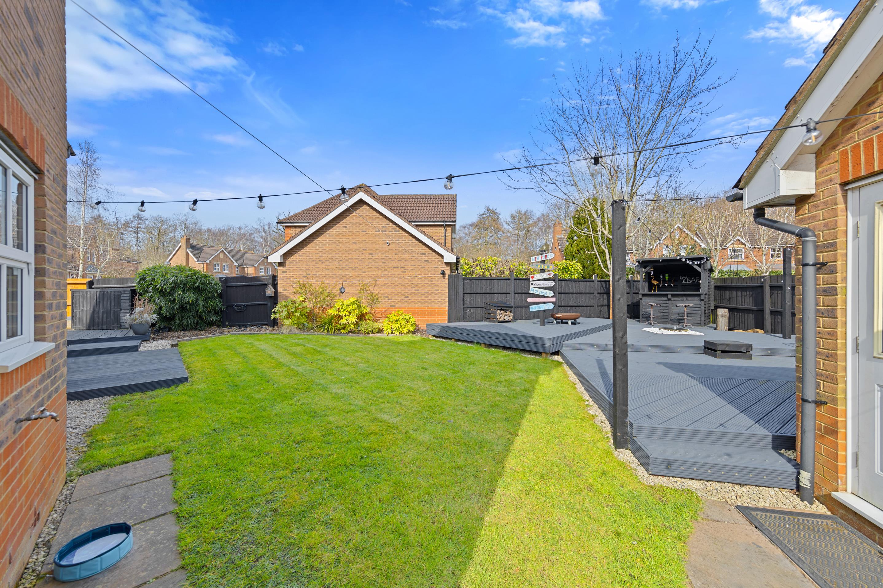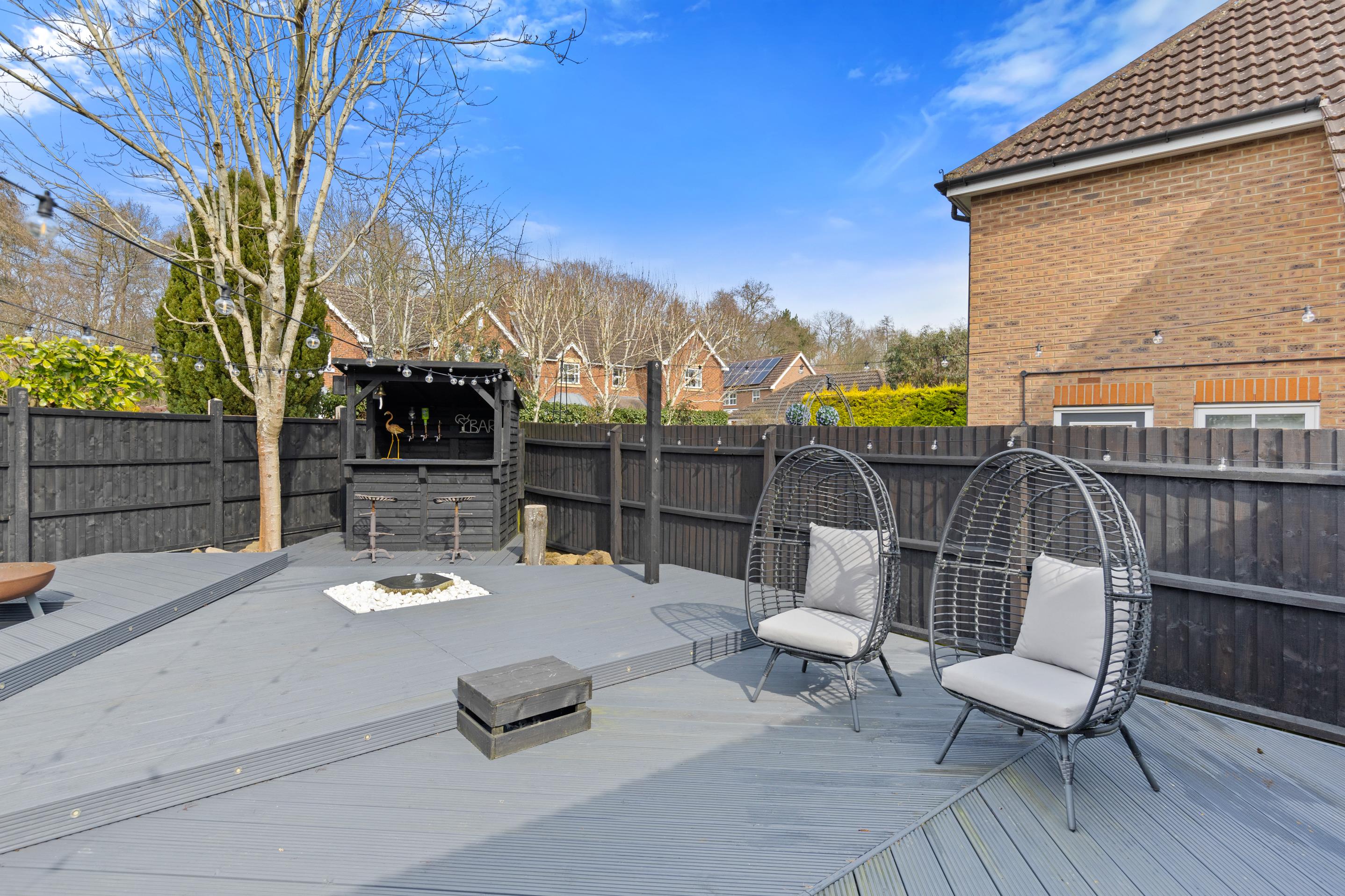 The outdoor space is equally impressive, with beautifully landscaped gardens that create a serene oasis for family enjoyment. Various paved and timber decked seating areas invite you to bask in the sun or entertain guests in style. Additionally, a well-designed bar area adds a unique touch, making this garden perfect for summer gatherings.