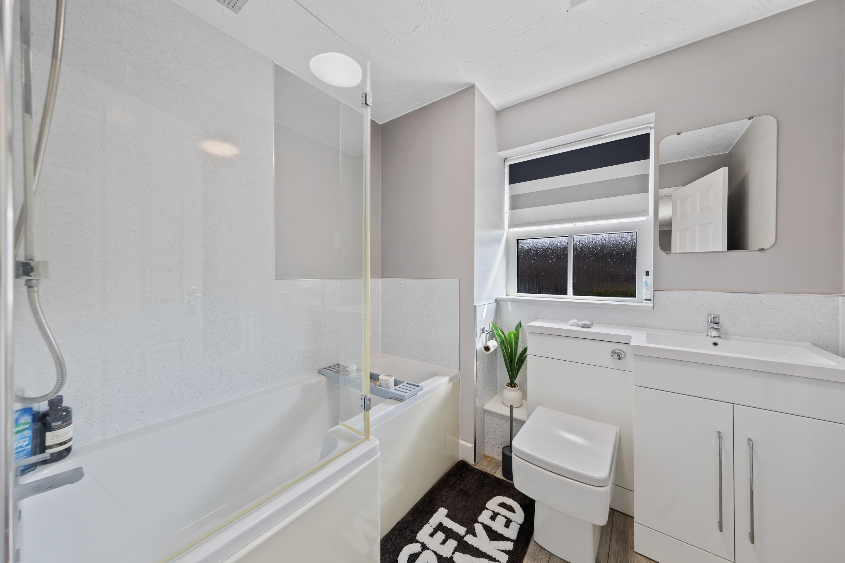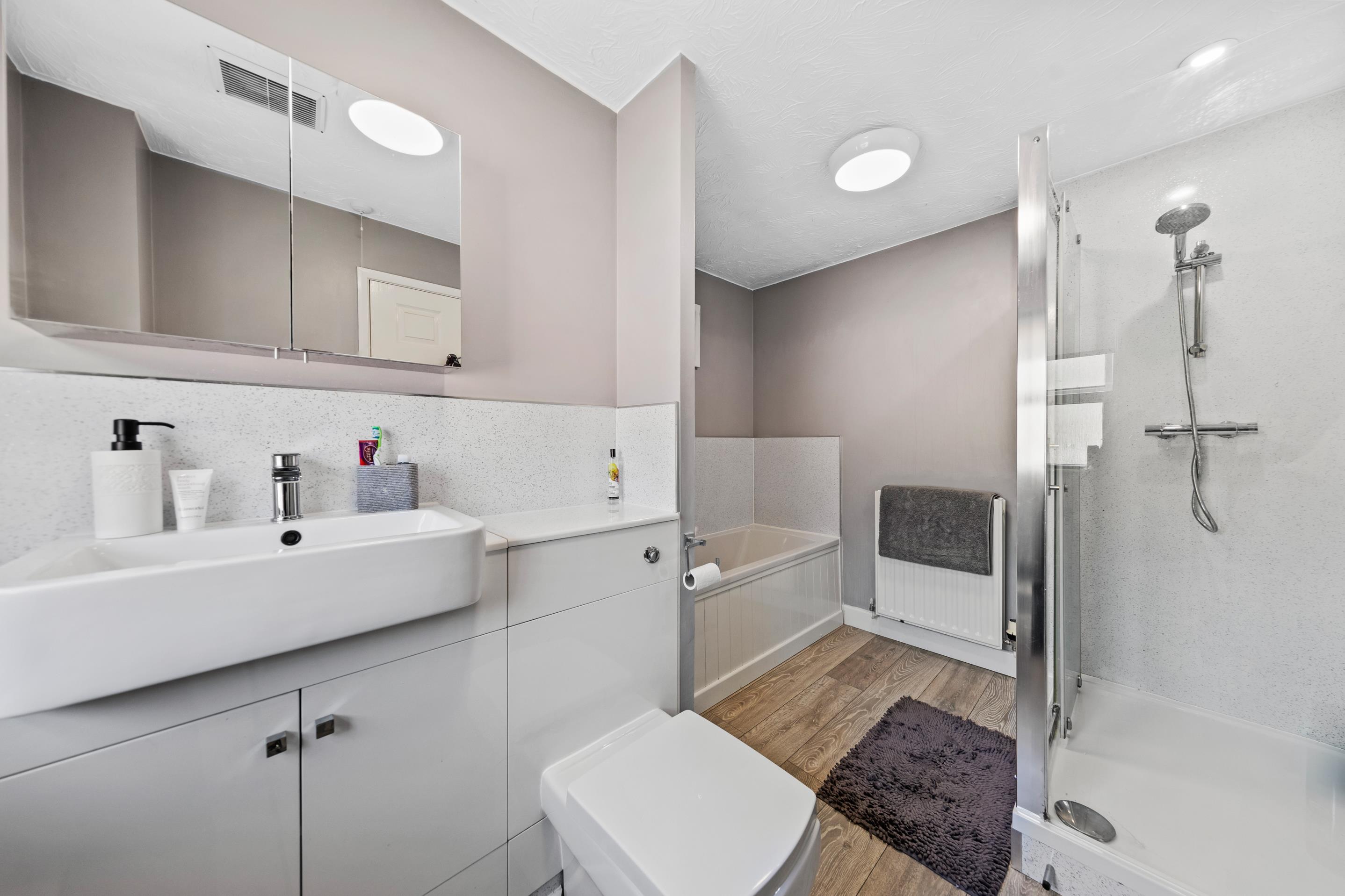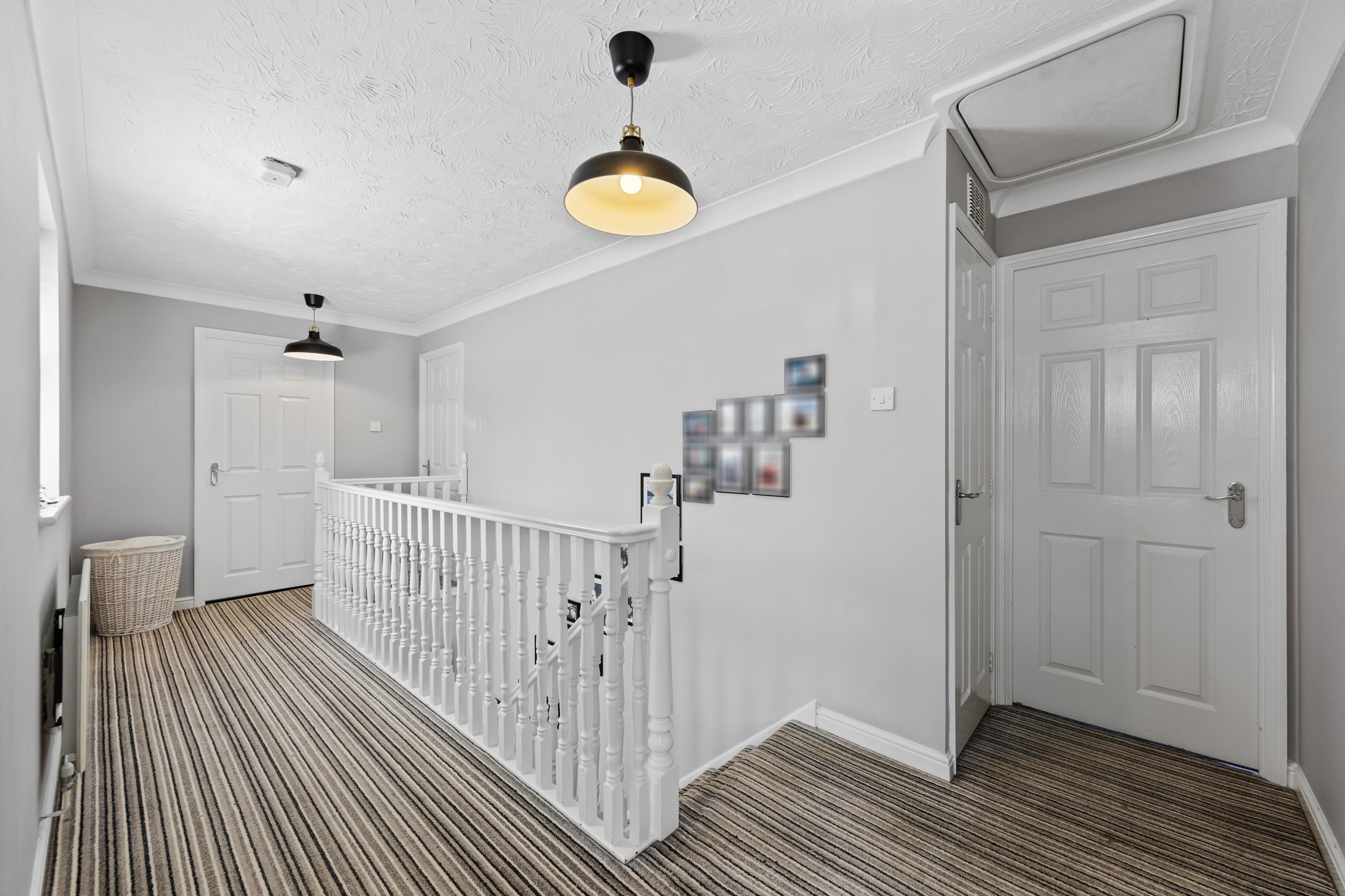 Venturing upstairs, the first floor reveals four bedrooms, each thoughtfully designed with built-in wardrobes. Bedroom one is particularly impressive, featuring a luxury fitted en-suite bathroom complete with a separate shower cubicle. The second bedroom also benefits from a luxury fitted shower room. A stylish family bathroom serves the remaining bedrooms, highlighting the attention to detail found throughout the home.