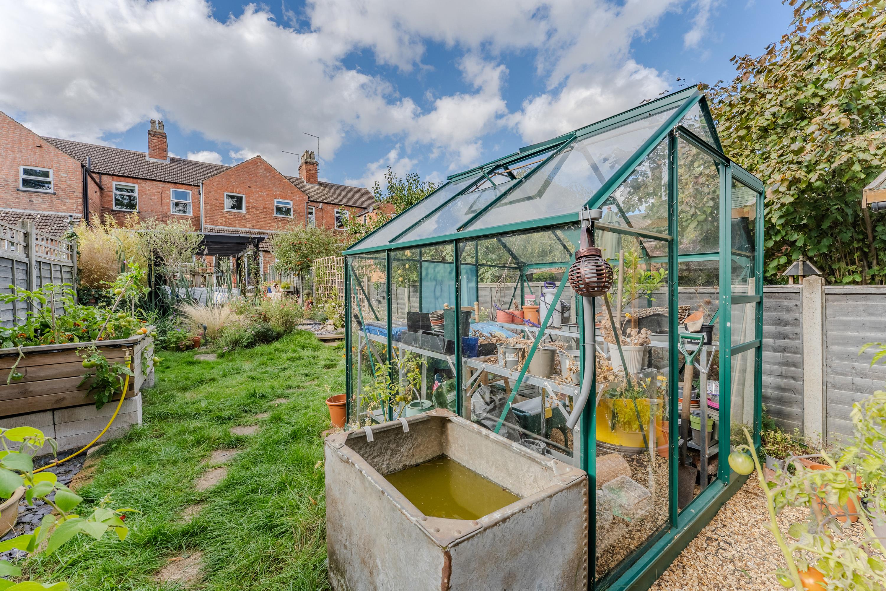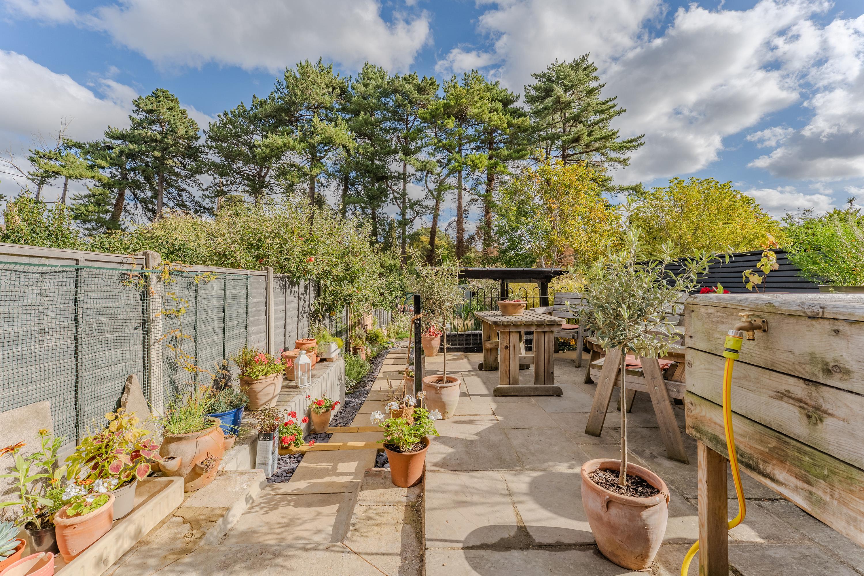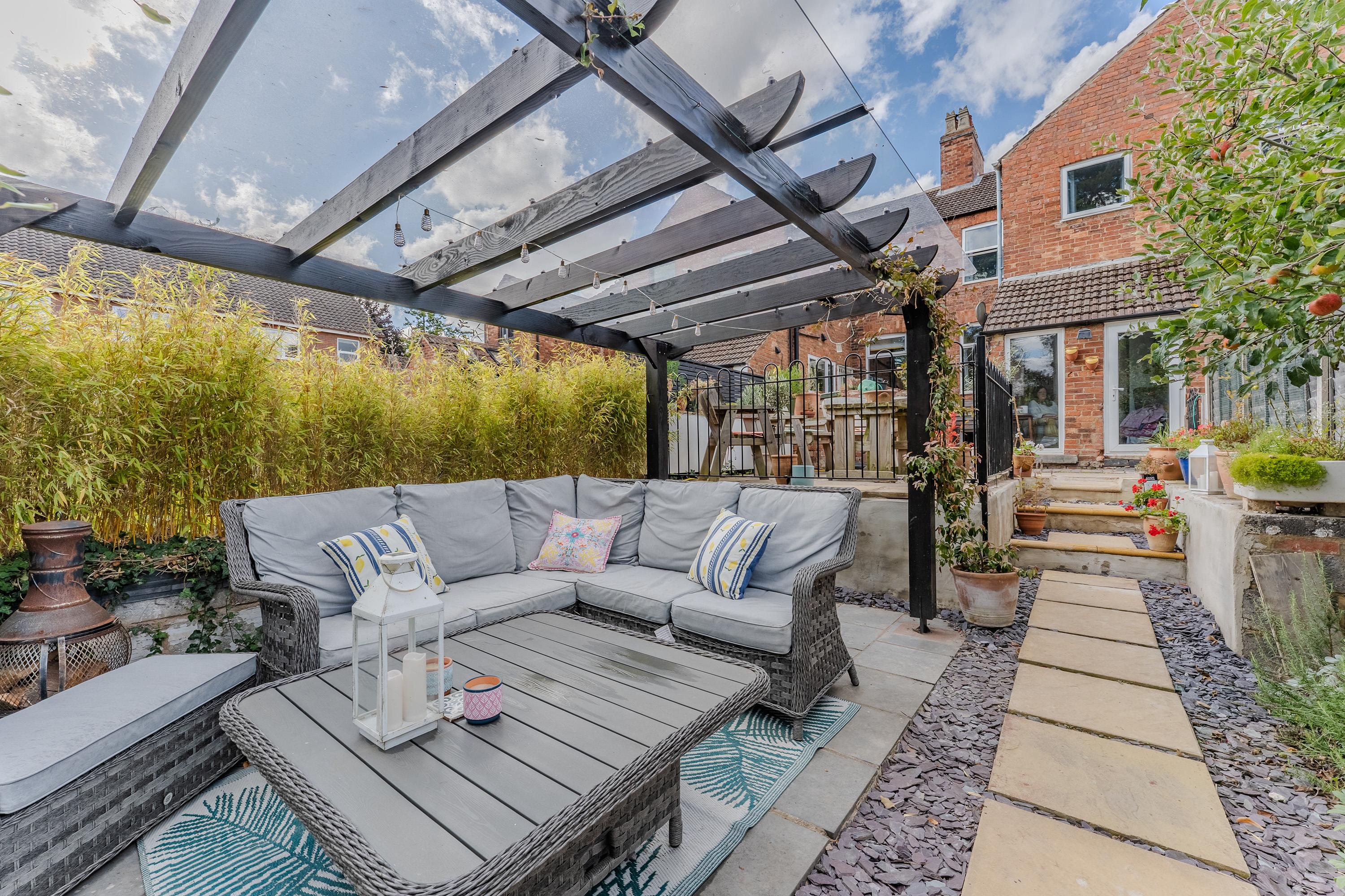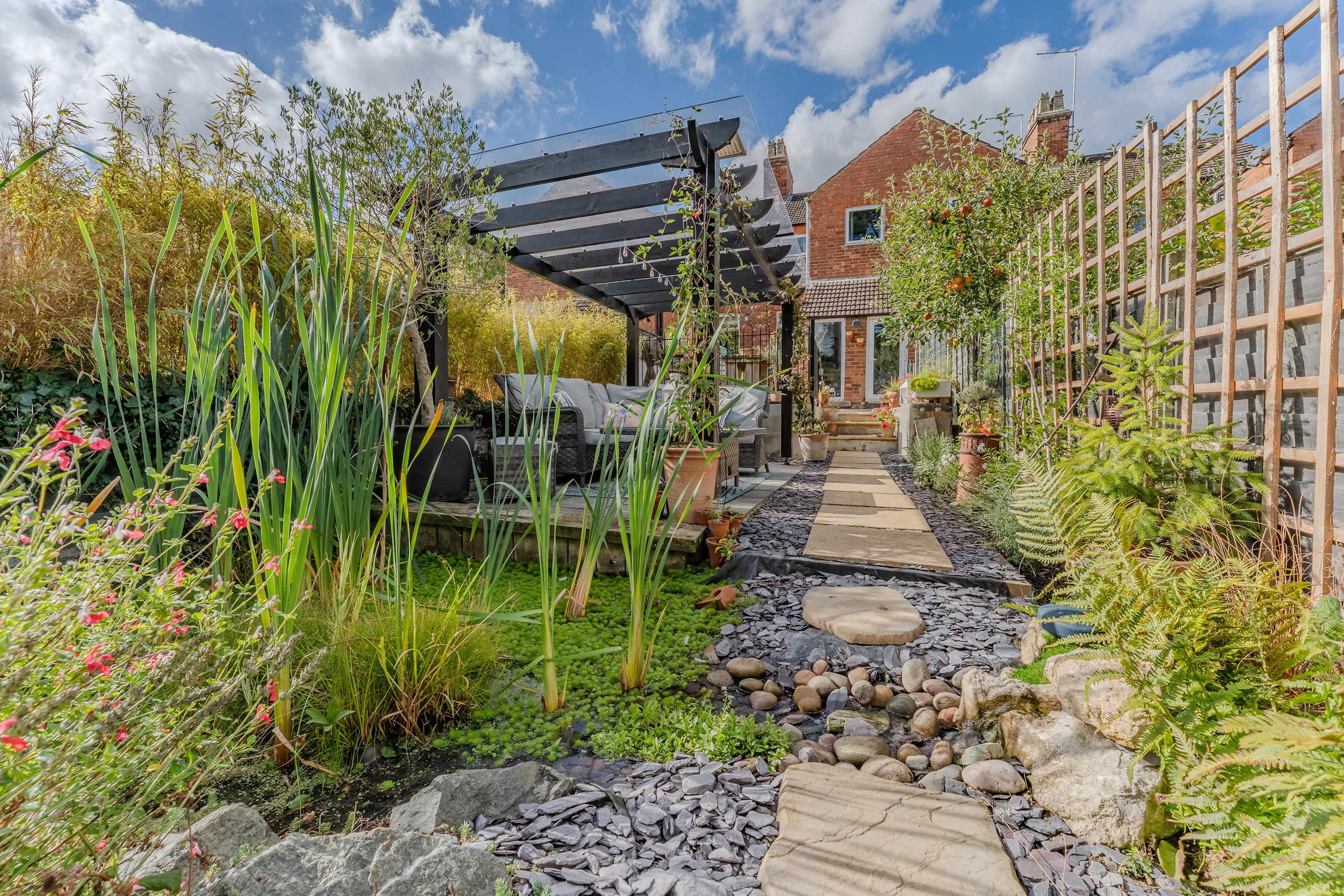 The rear garden is an impressive feature of this property: exceptionally large and well laid out with a patio and pergola, a generous lawn, and handy sheds at the far end. To the front, the property offers off-road parking for two vehicles.