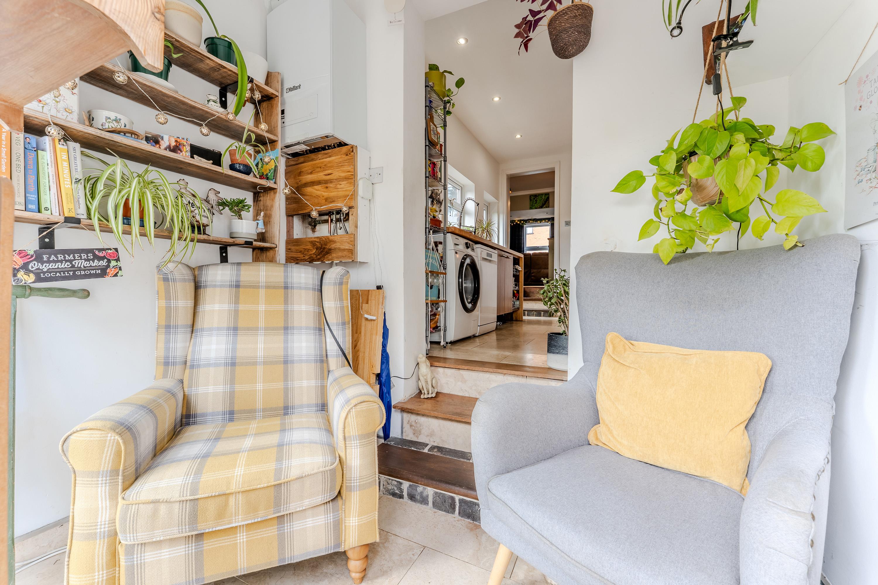 The welcoming lounge sets the tone with a cosy and inviting feel, leading through to a bright dining room – perfect for family meals and entertaining guests. To the rear, a modern kitchen opens into a delightful garden room, ideal for enjoying year-round views of the garden.