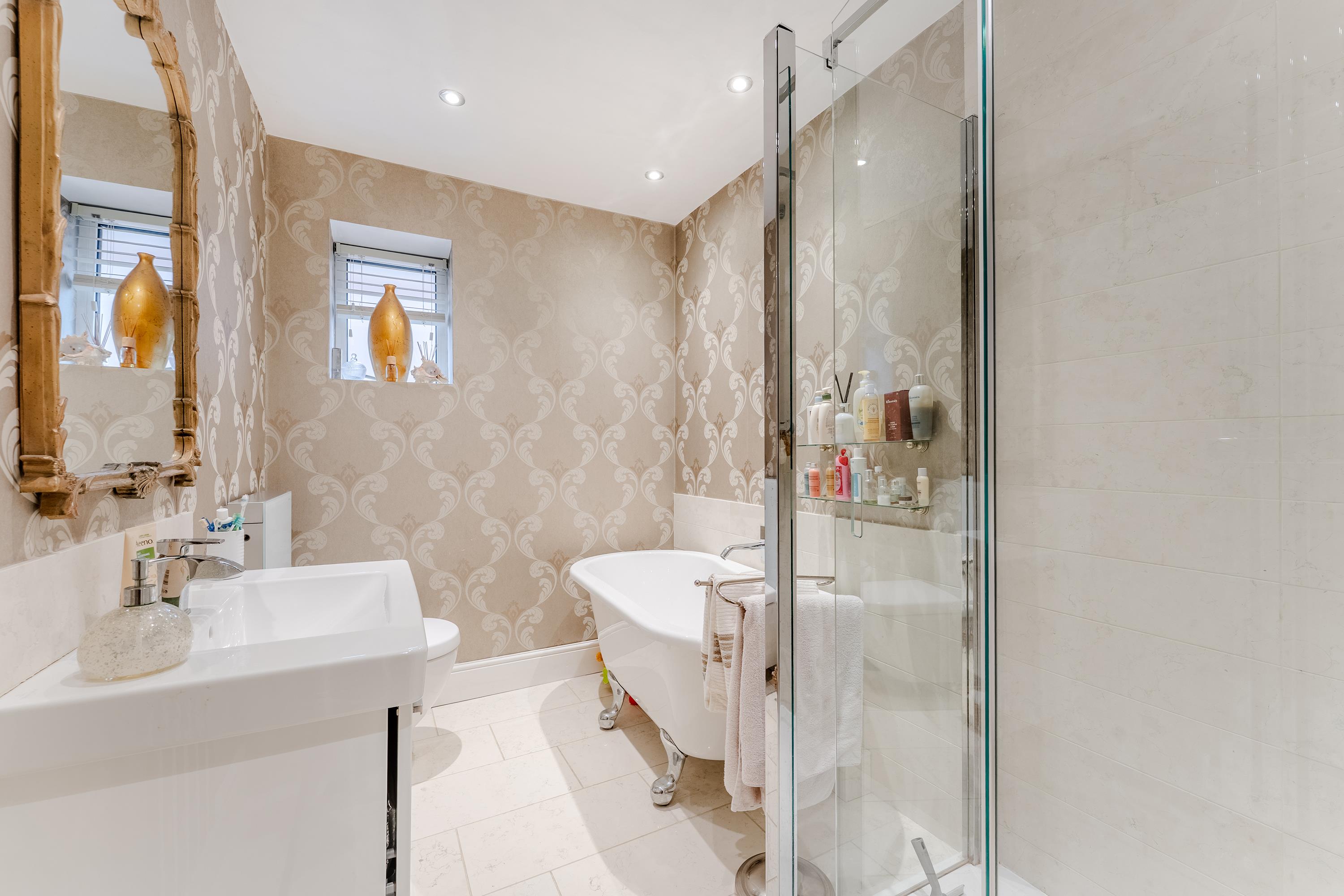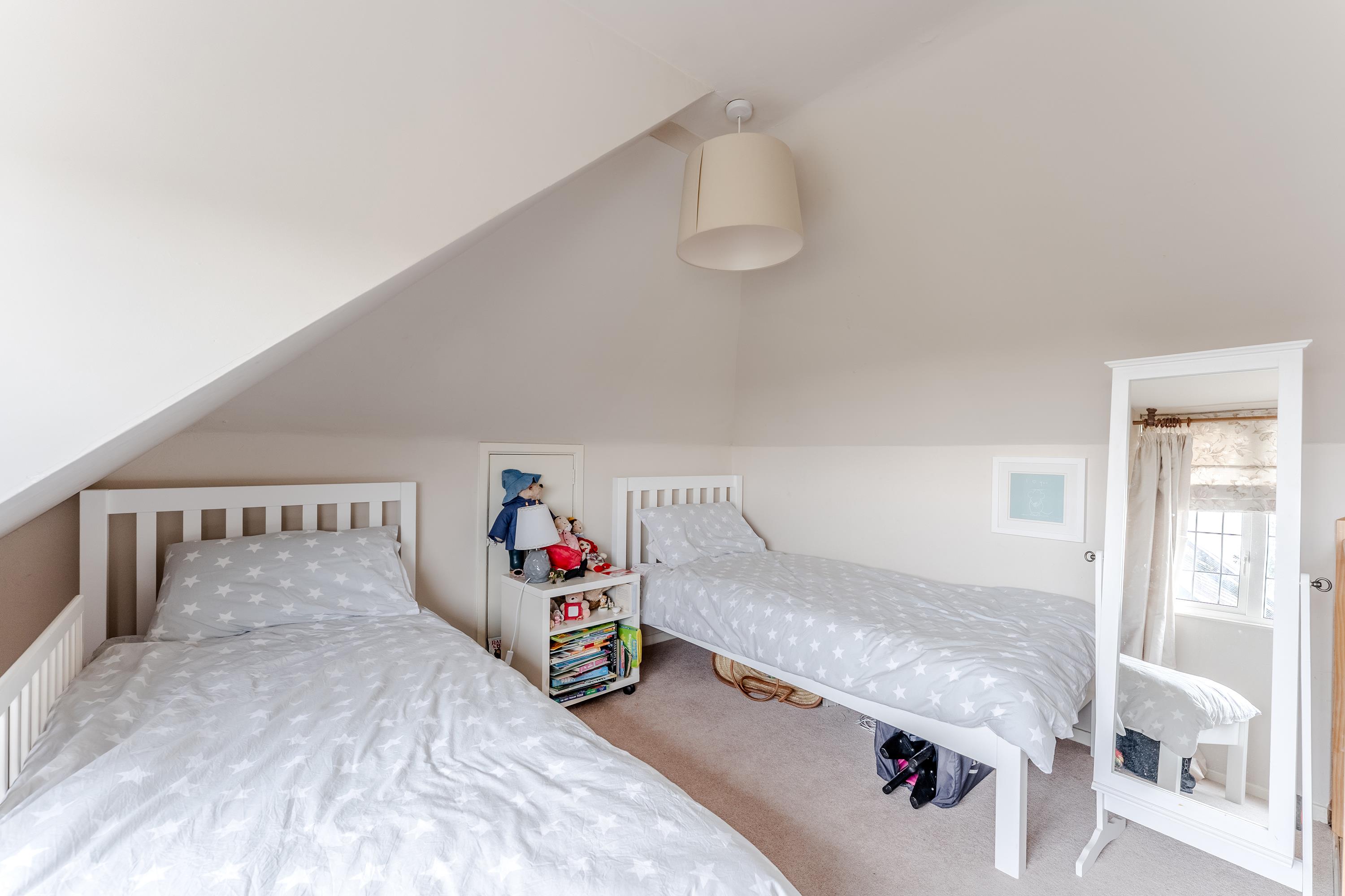 The first floor boasts four double bedrooms, with bedroom one featuring a Juliet balcony with views across the garden, built-in storage and access to a luxury fitted en-suite shower room. A contemporary family bathroom with separate shower cubicle serves the remaining bedrooms on this level. The second floor reveals a further fifth bedroom, offering flexibility for use as a guest suite, home office, or teenager's retreat.