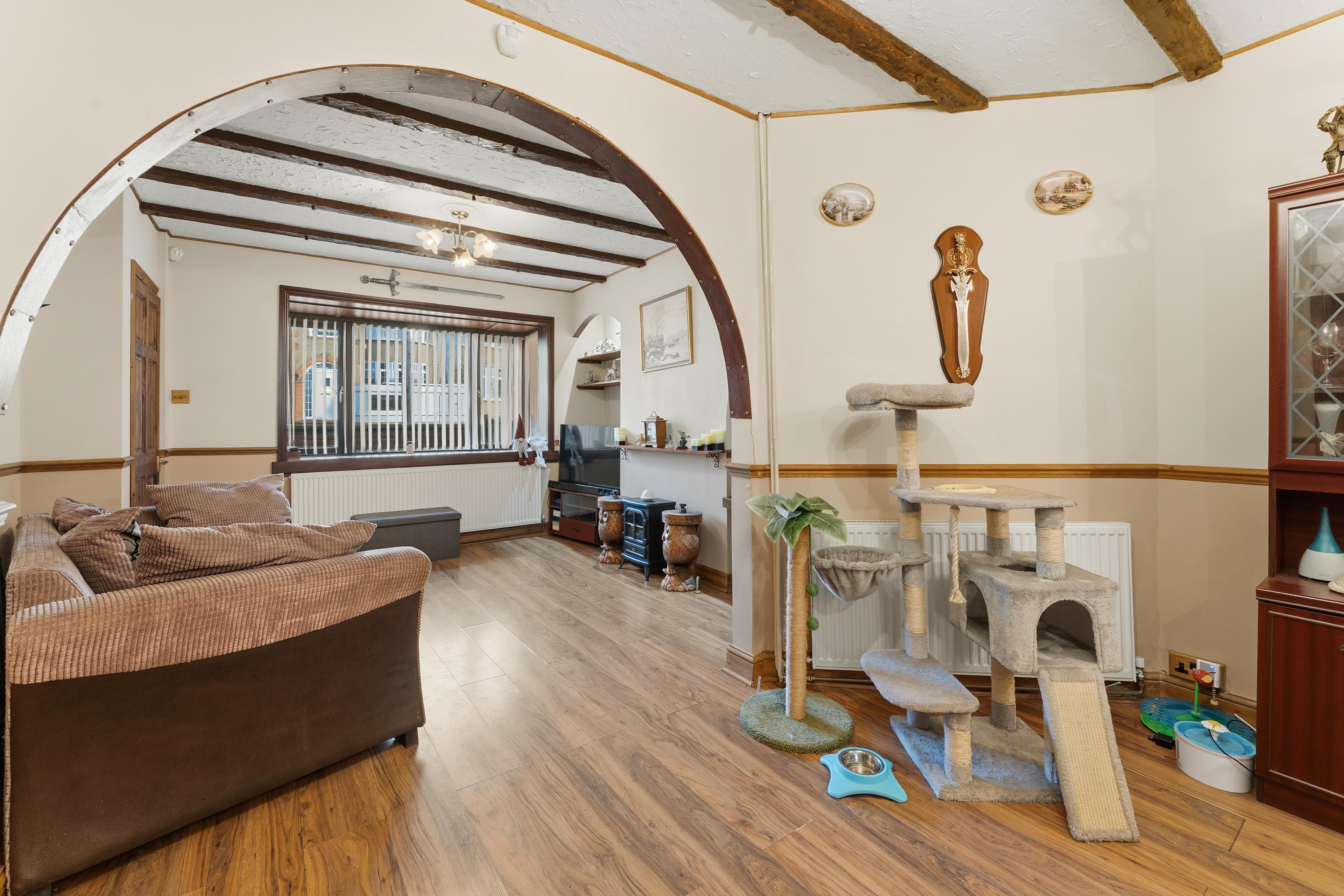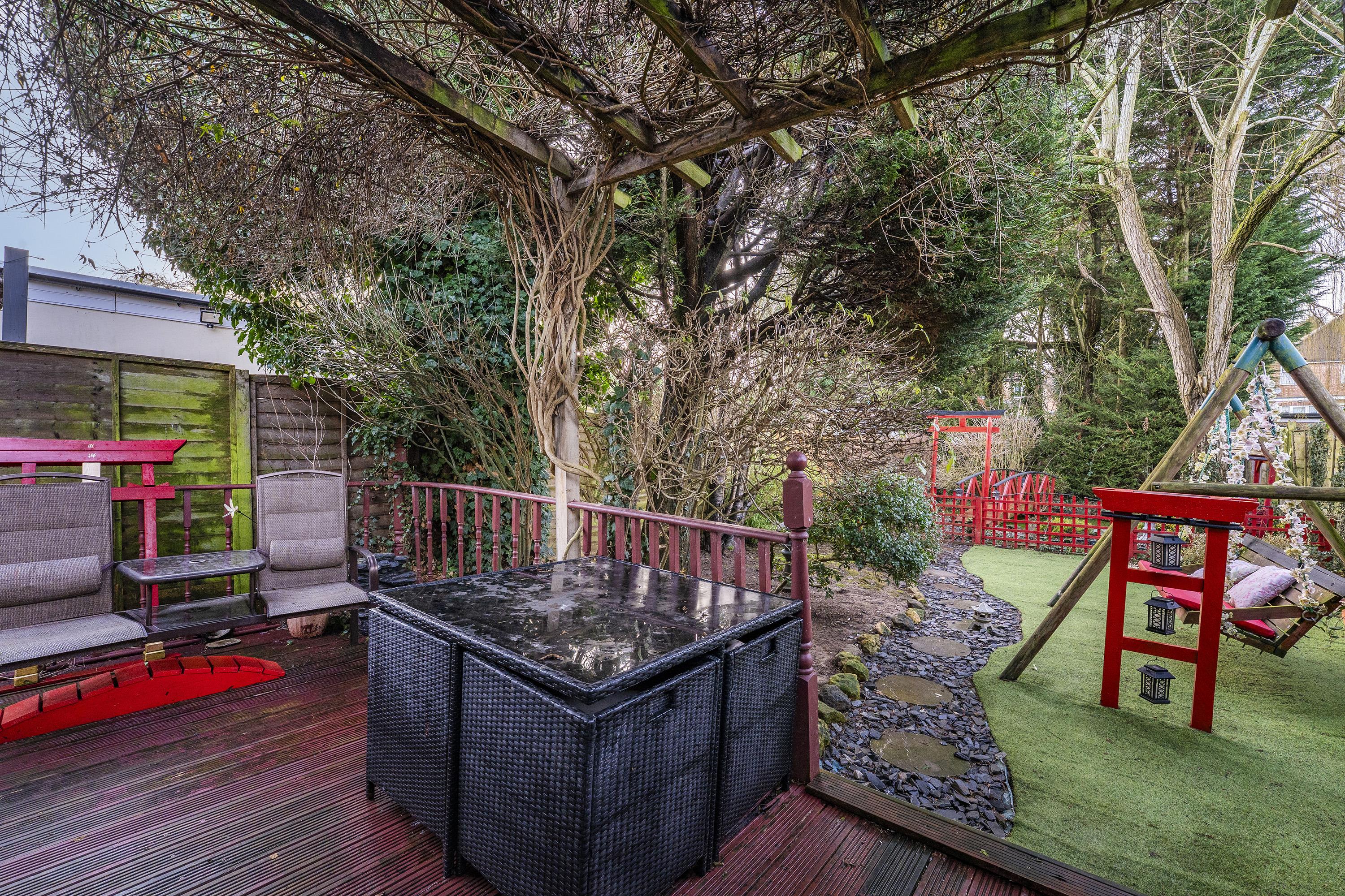 On the first floor, you'll find two well-proportioned bedrooms alongside a superb four piece bathroom suite that includes a separate shower cubicle, providing both style and functionality. The exterior of the property is equally impressive, with off road parking at the front ensuring ease and convenience. To the rear, a large landscaped garden awaits, complete with an attractive pergola and timber decked seating area, perfect for outdoor dining and relaxation during warmer months with the addition of an ornamental fishpond.