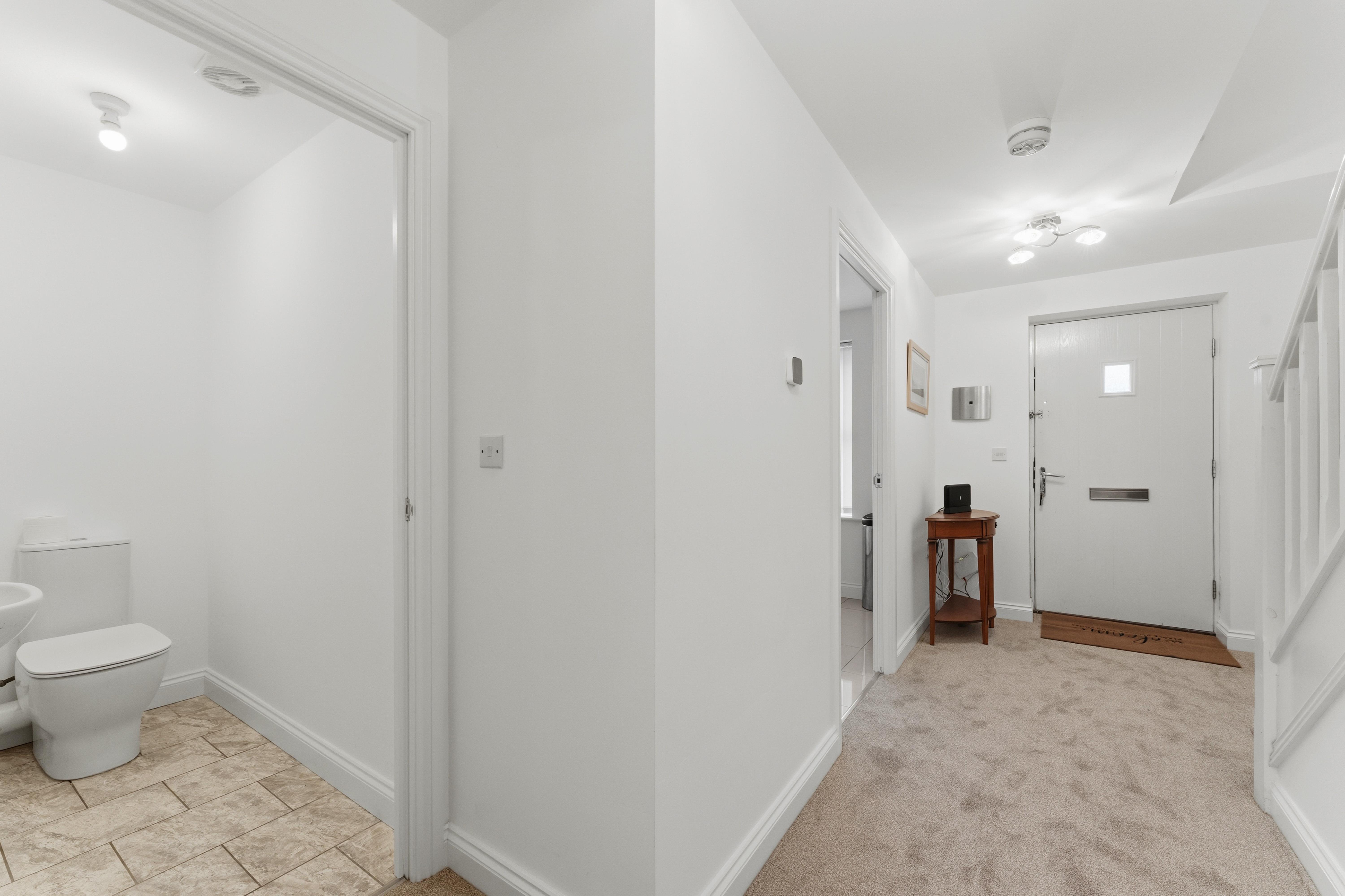 The welcoming hallway leads to a spacious lounge, downstairs cloakroom & kitchen/diner, ideal for relaxation and entertaining guests. The well-designed layout features two bedrooms and a bathroom on the second floor, providing a private retreat for family or guests.